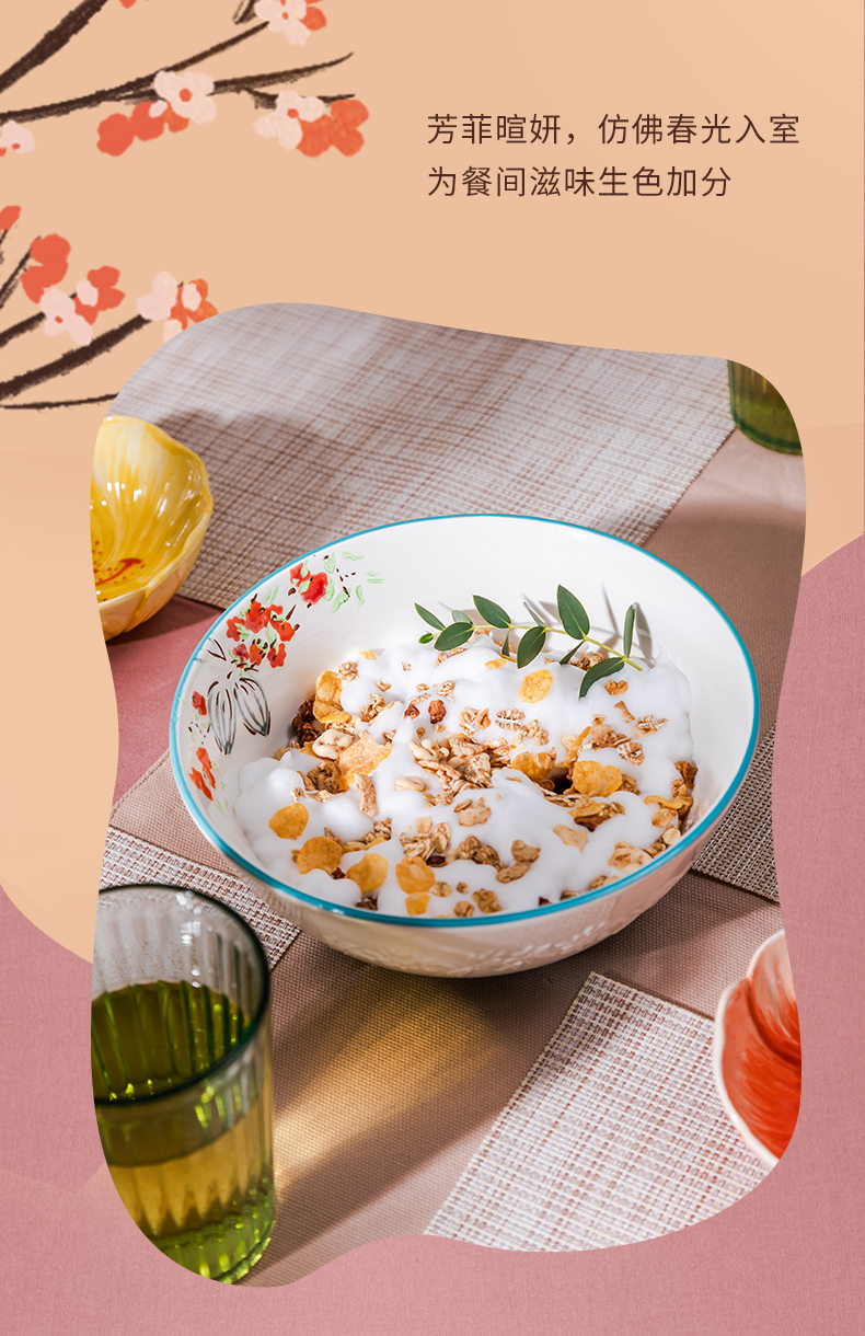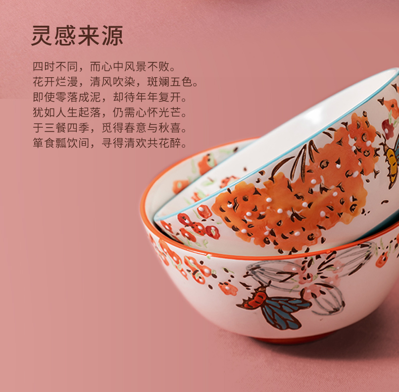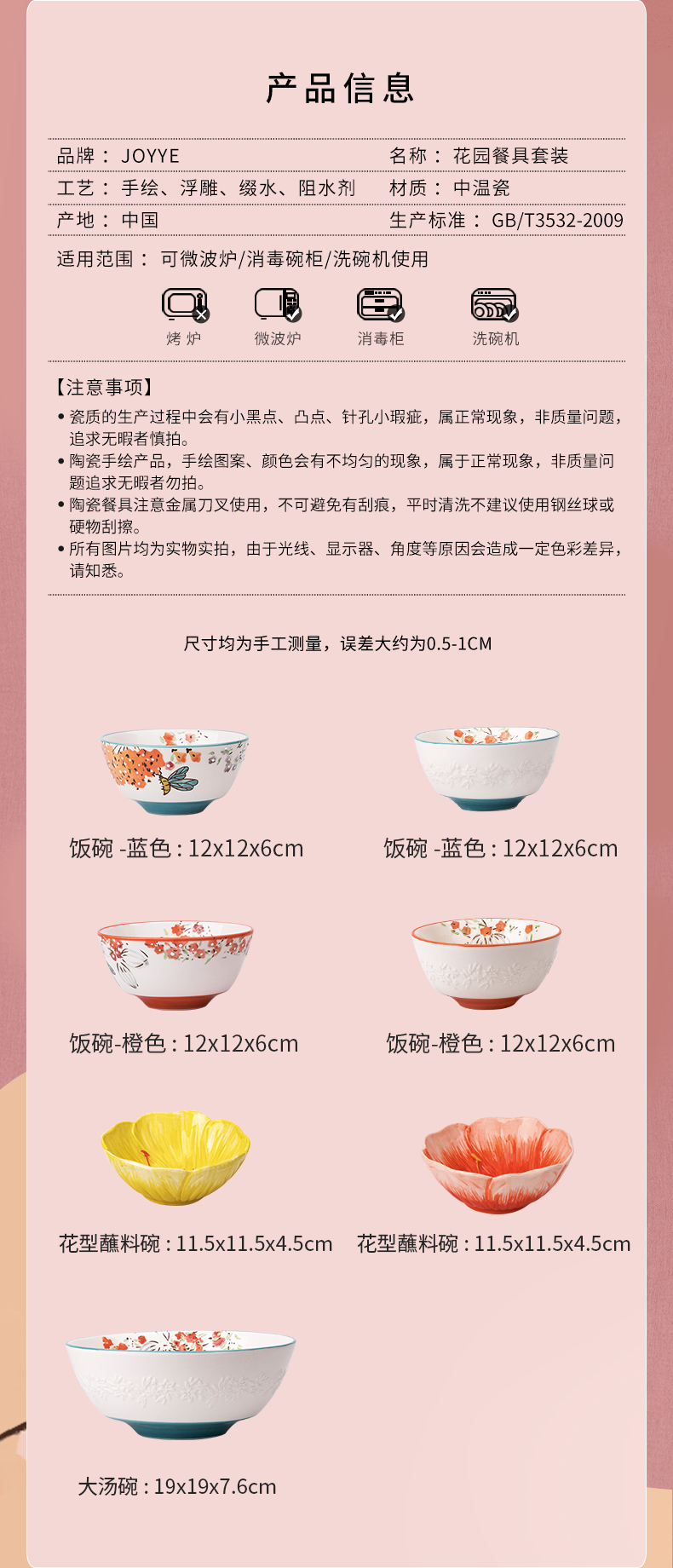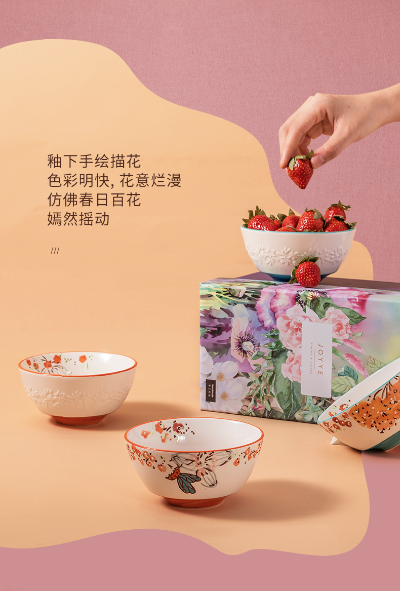 JOYYE卓艺套2花园饭碗TFB0119245单个5英寸汤碗大号ins风陶瓷碗家用甜品碗礼盒套装