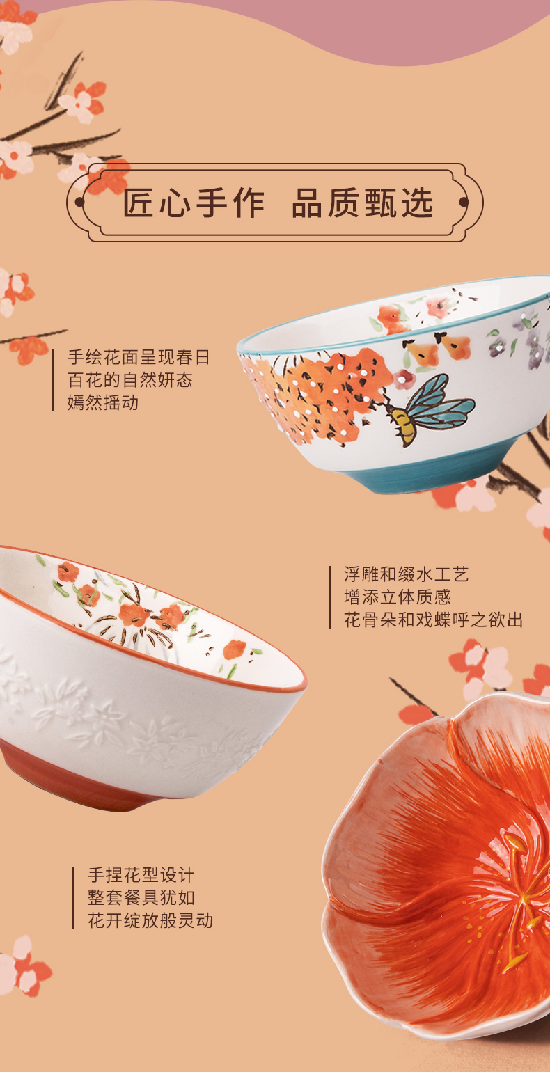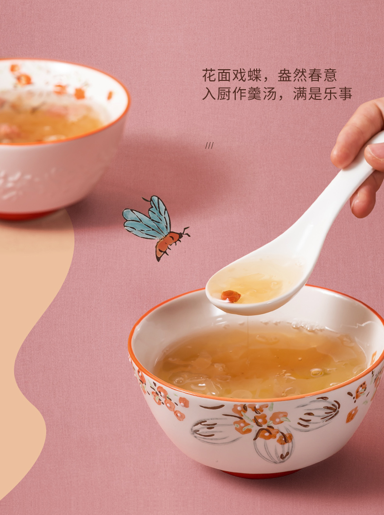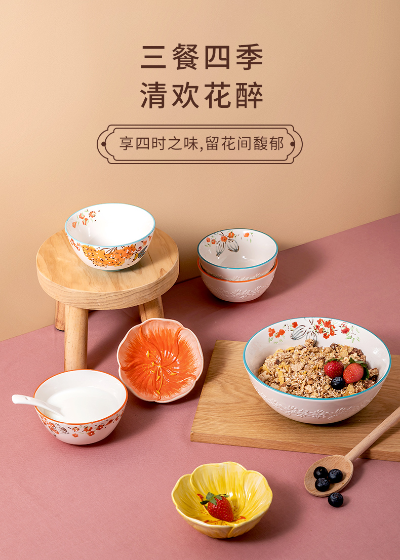 JOYYE卓艺套2花园饭碗TFB0119245单个5英寸汤碗大号ins风陶瓷碗家用甜品碗礼盒套装