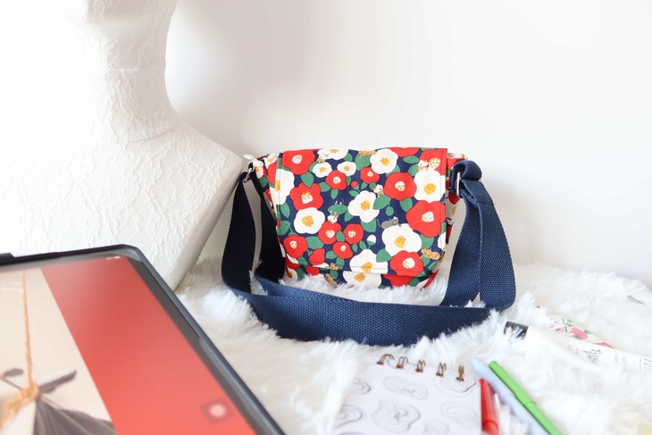 HUJI祤集Flap斜挎包风の花茶花小猫