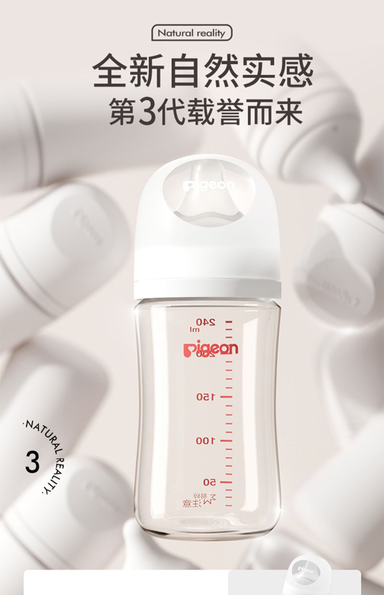 贝亲自然实感Ⅲ宽口径PPSU奶瓶240ml(M)