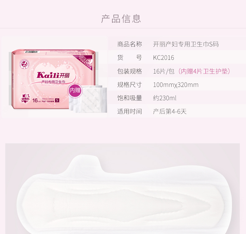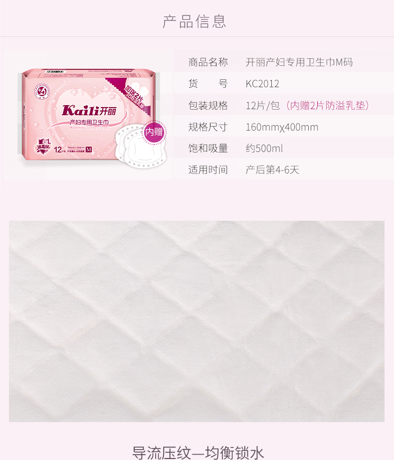 开丽产妇专用卫生巾M12片装