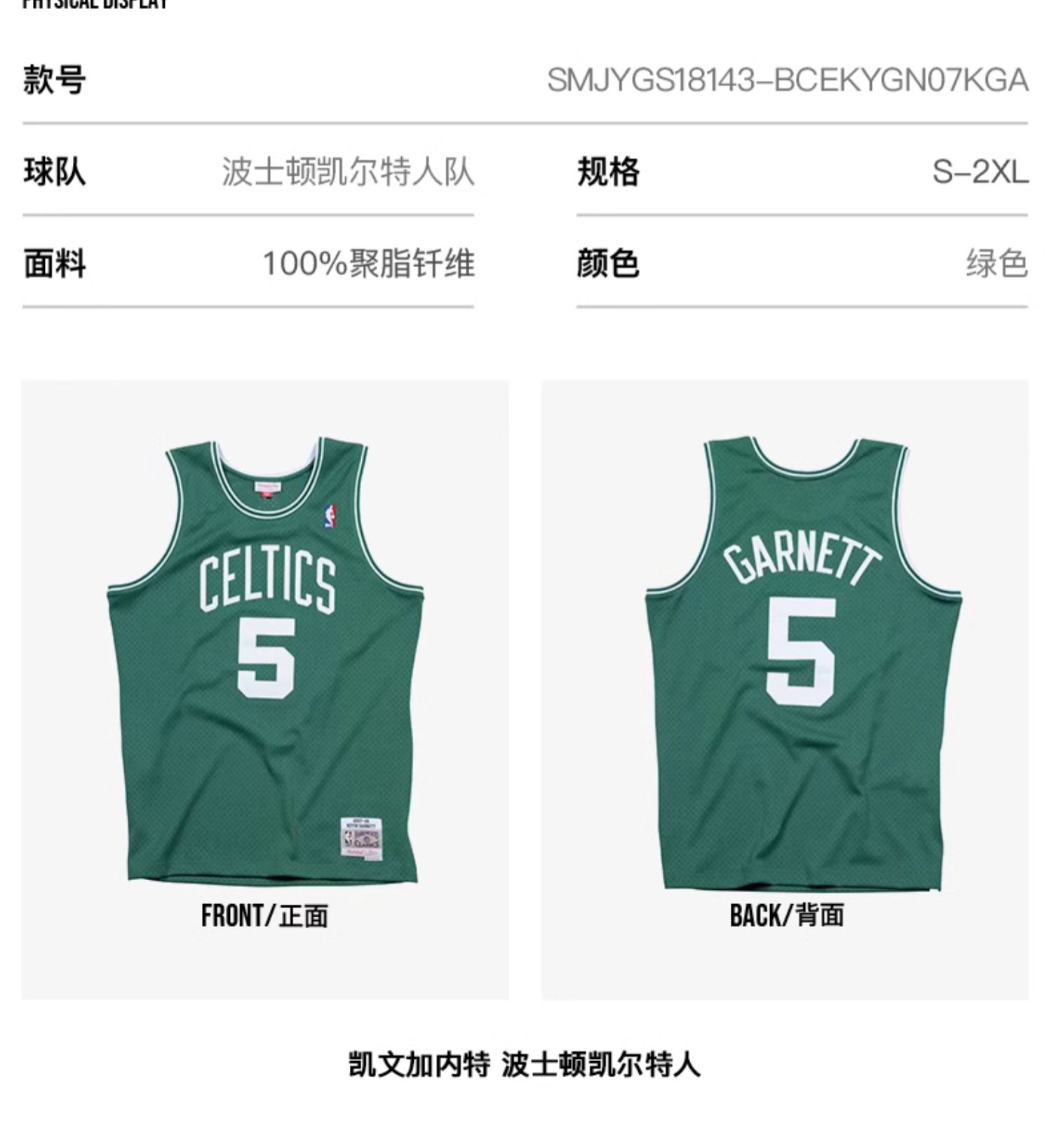 Mitchell&Ness 凯尔特人 加内特 07-08赛季球衣 绿色