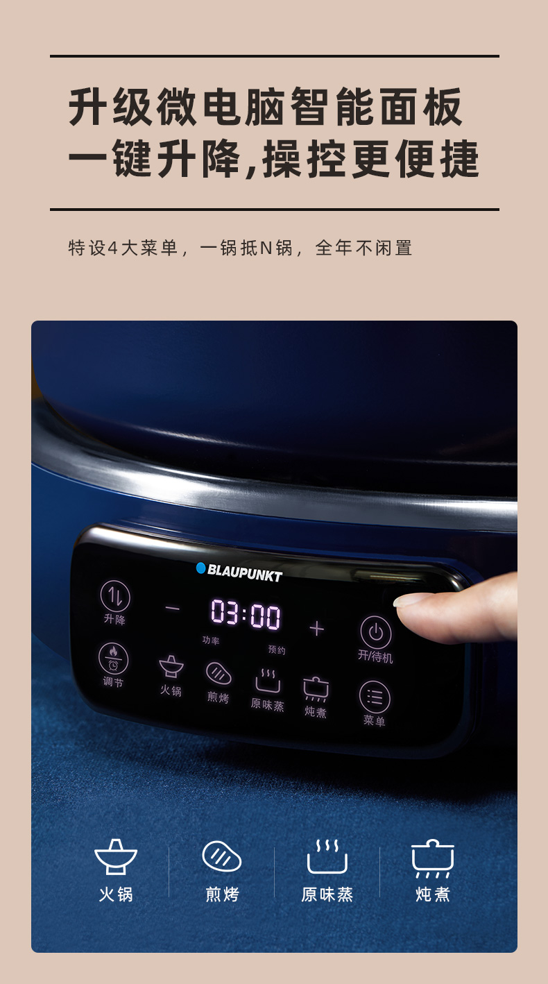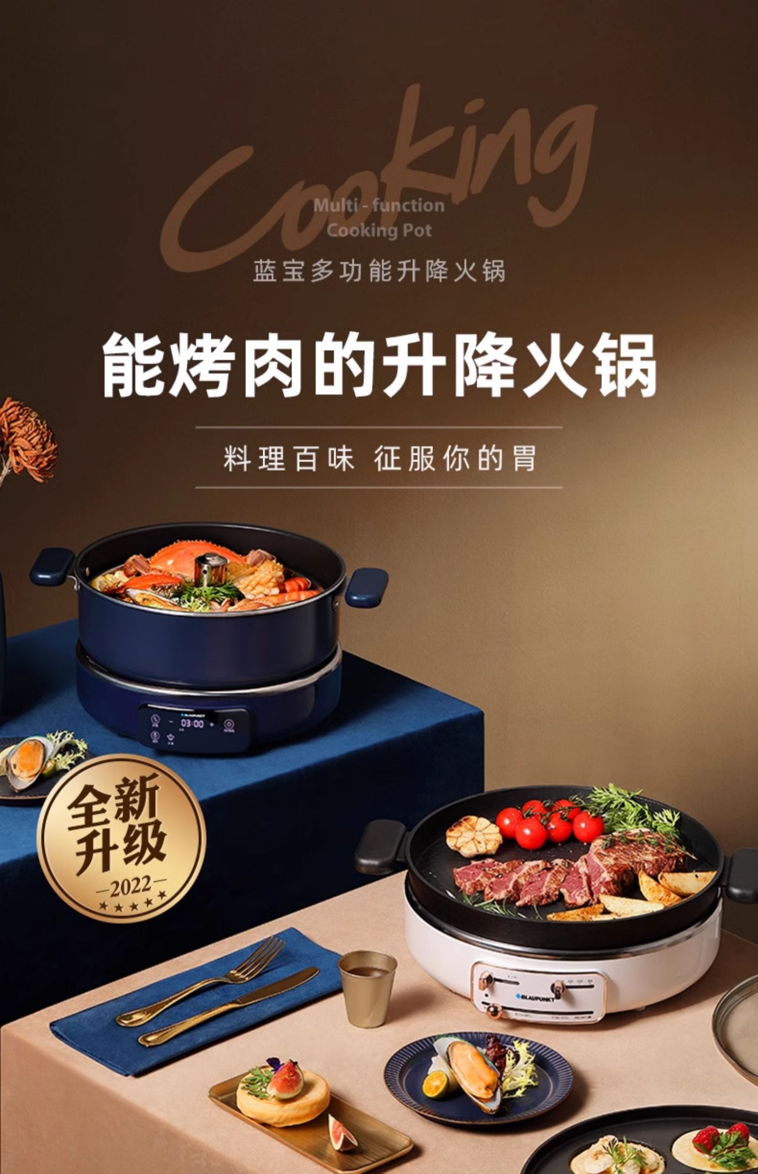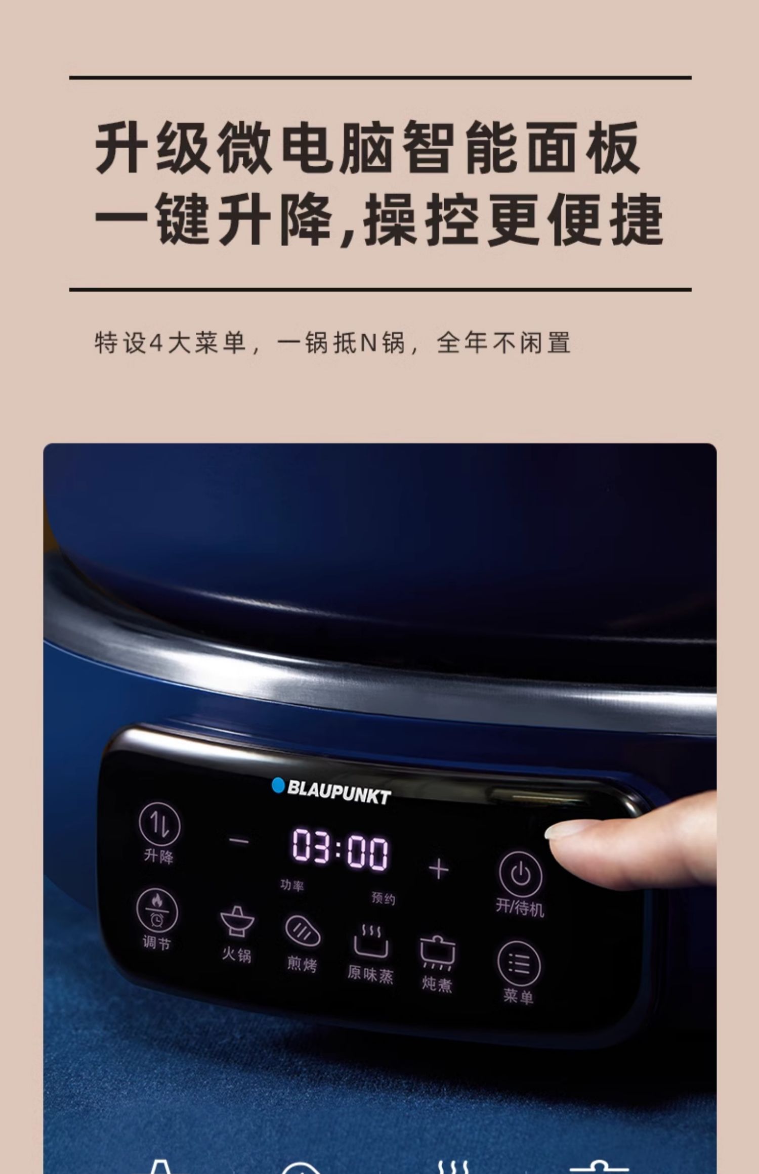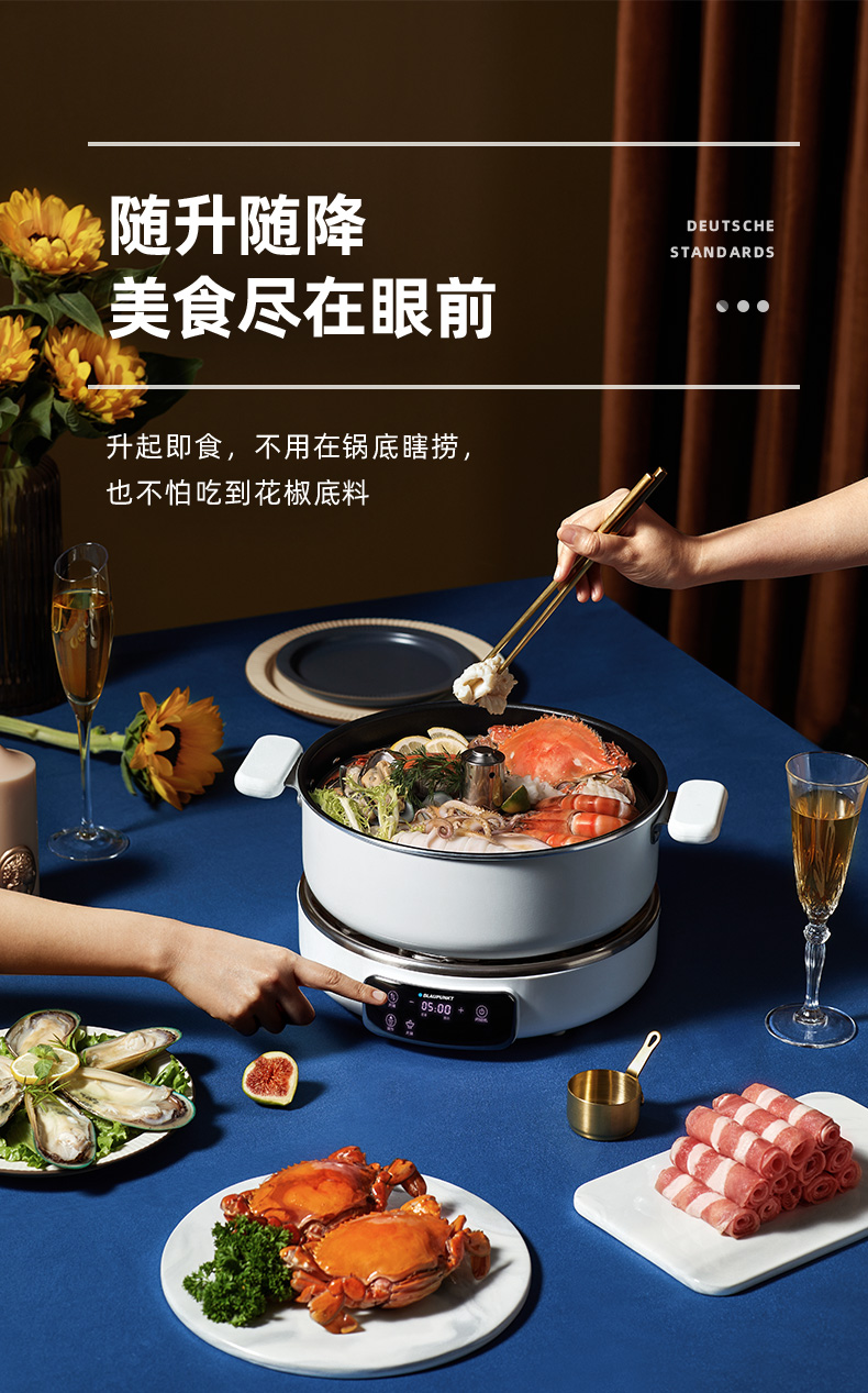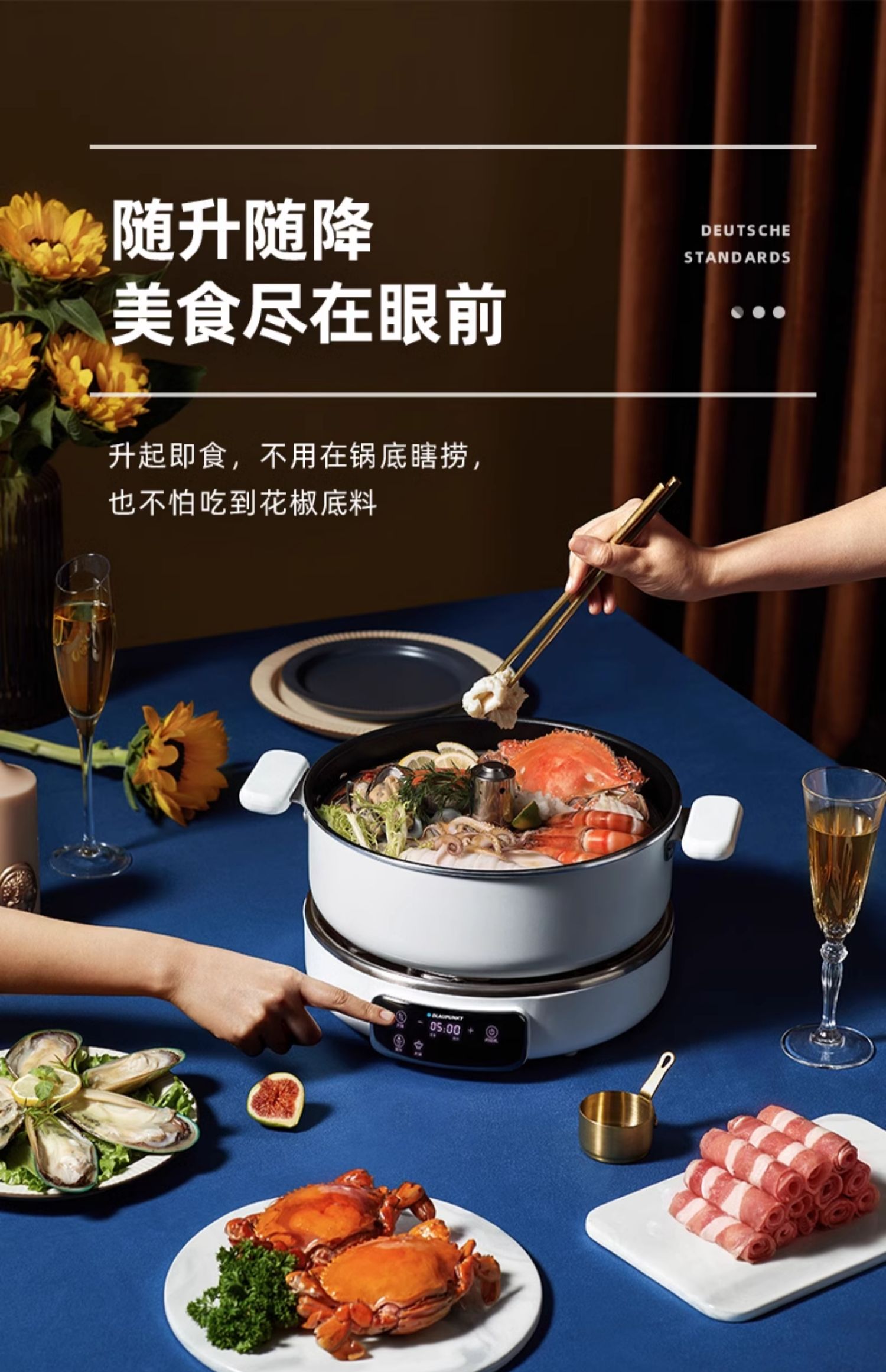 德国蓝宝智能自动升降火锅家用一体多功能料理锅5L电火锅电煮锅