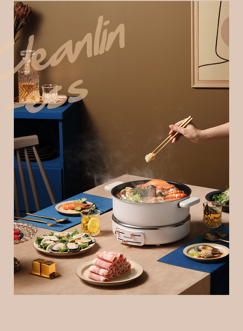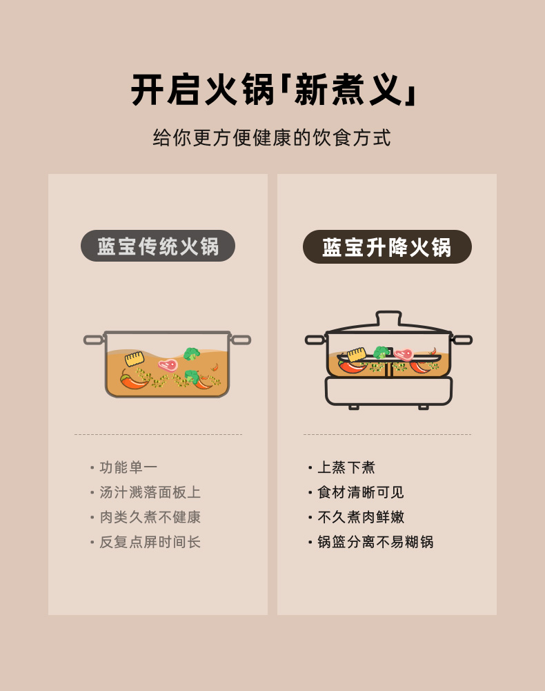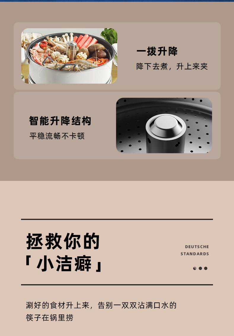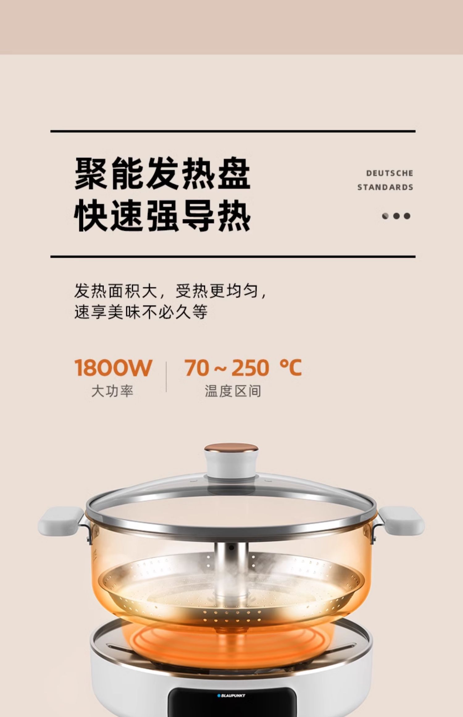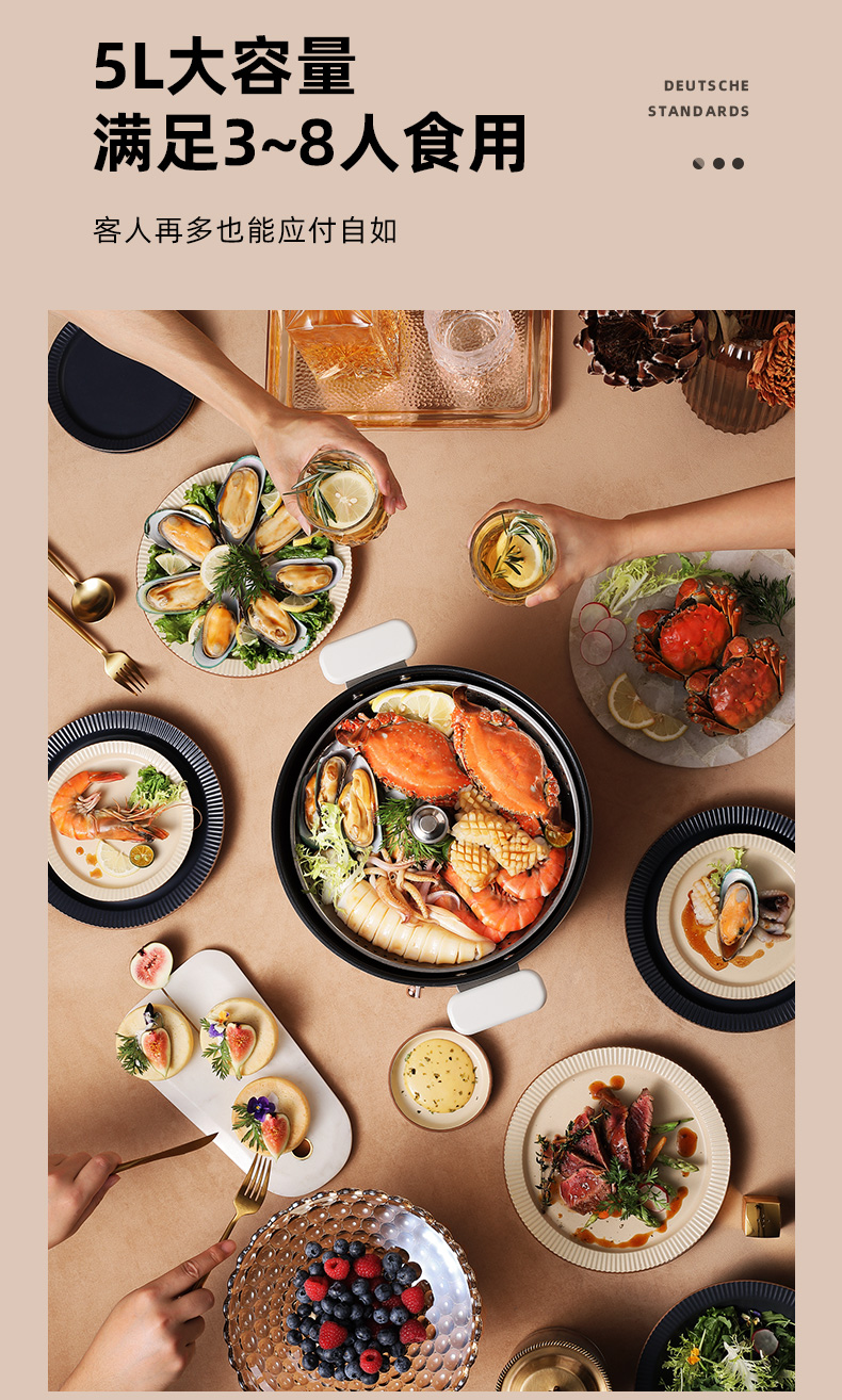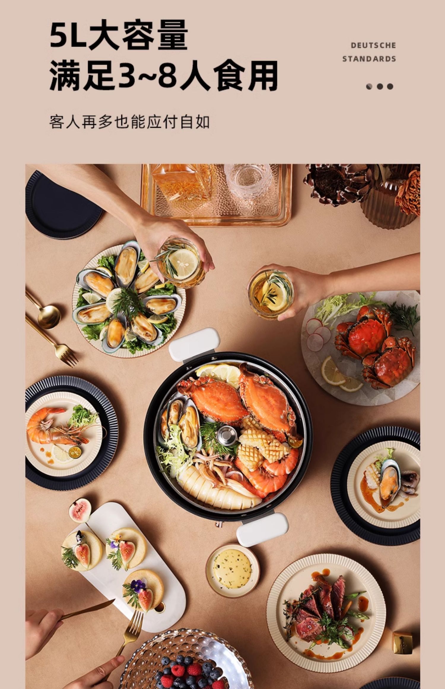 德国蓝宝智能自动升降火锅家用一体多功能料理锅5L电火锅电煮锅