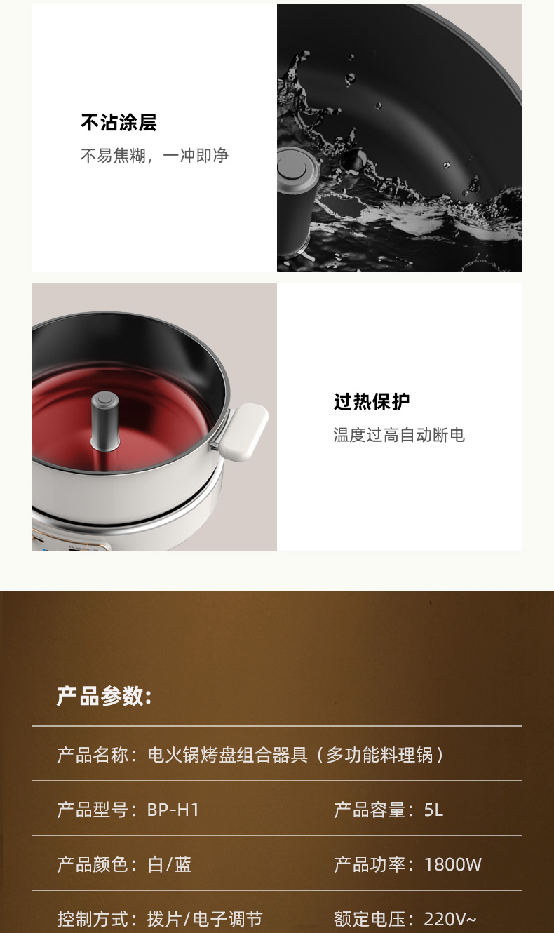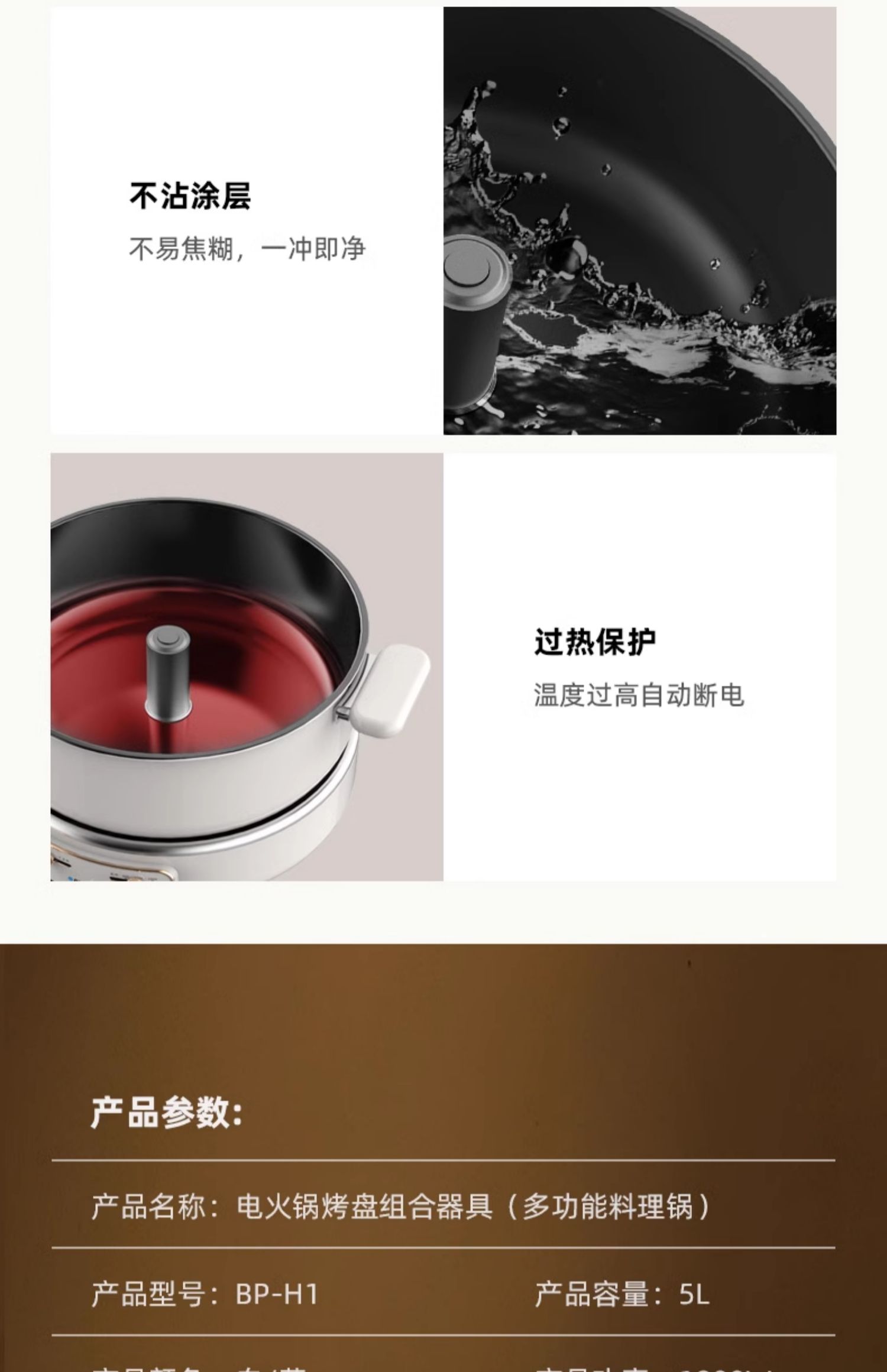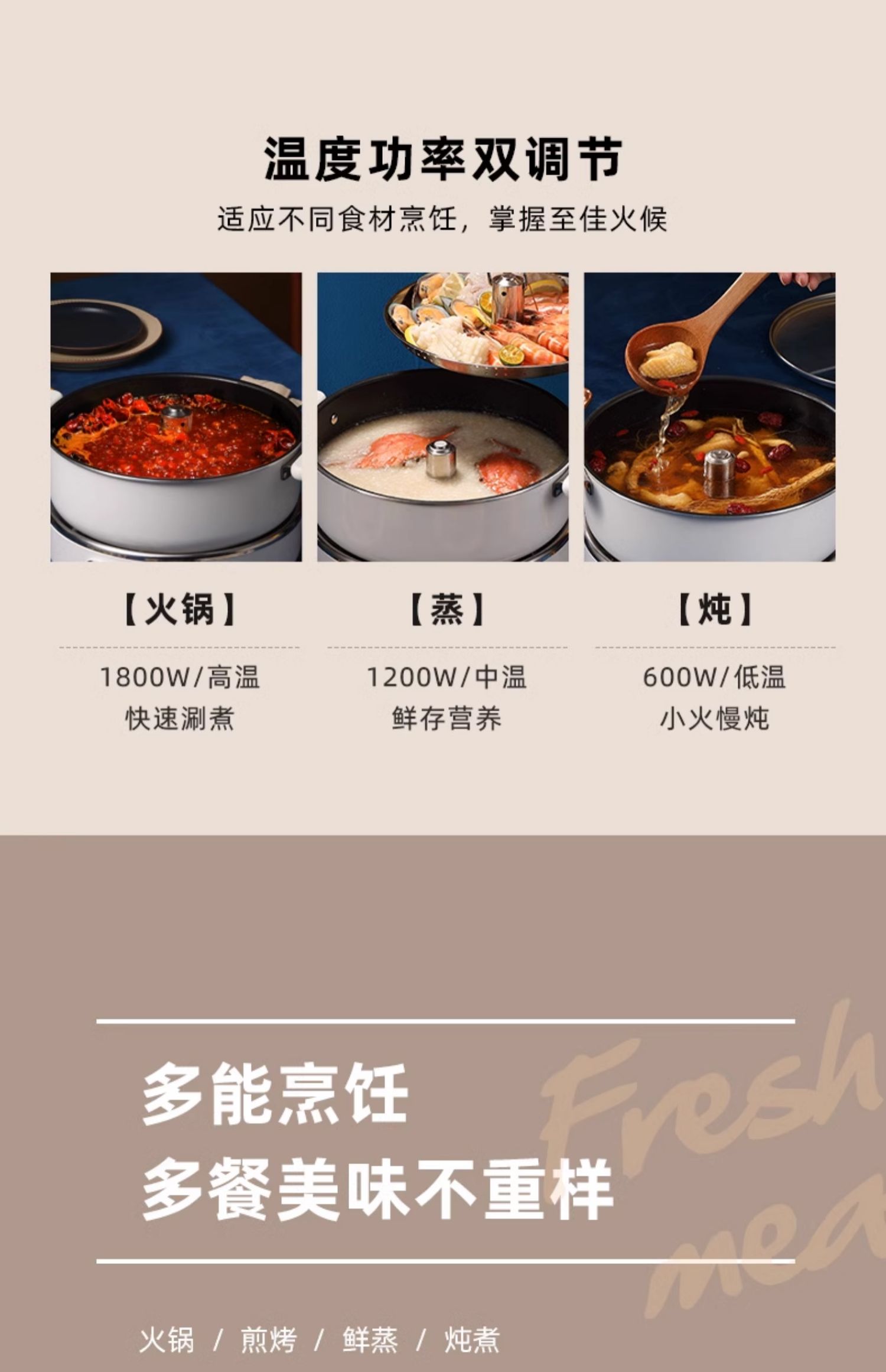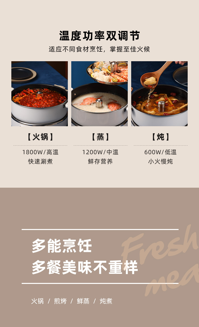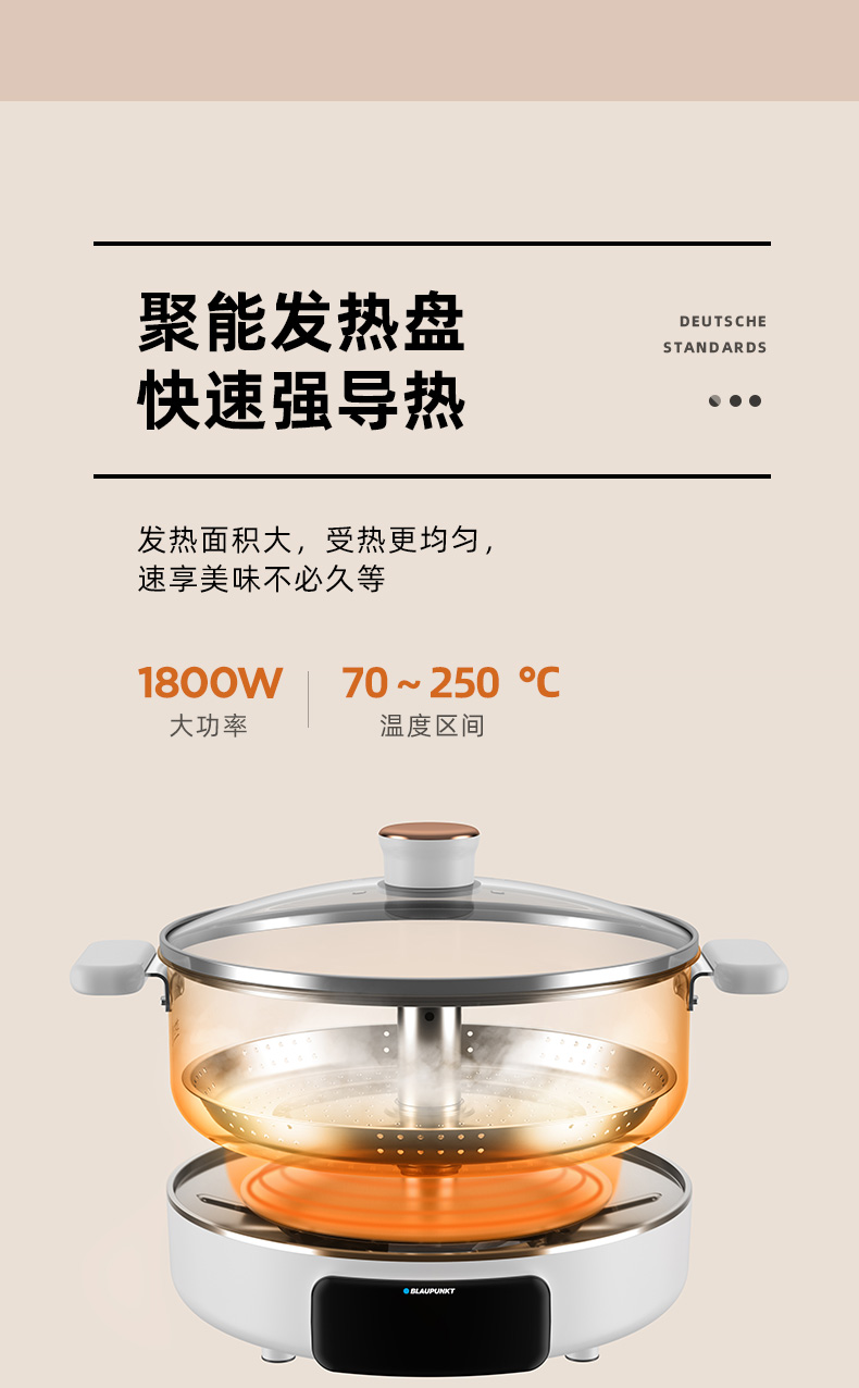 德国蓝宝智能自动升降火锅家用一体多功能料理锅5L电火锅电煮锅