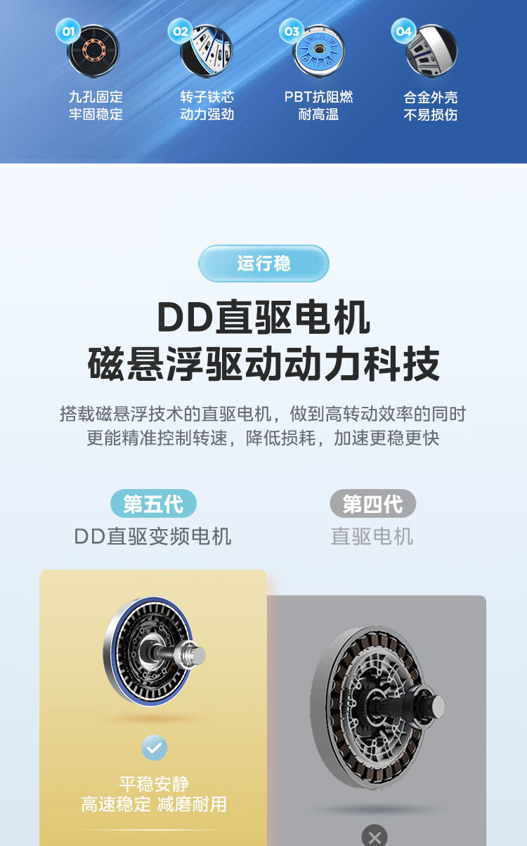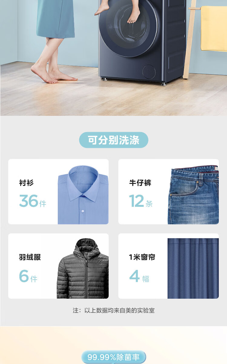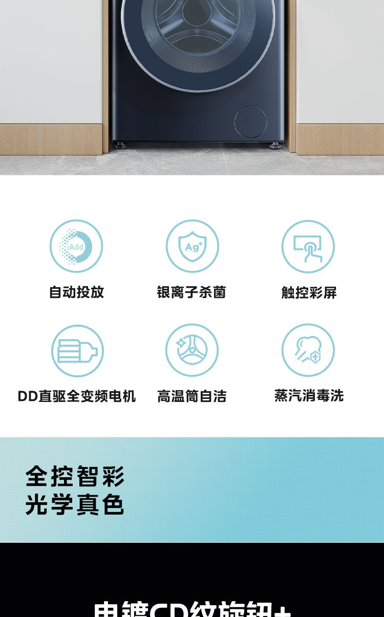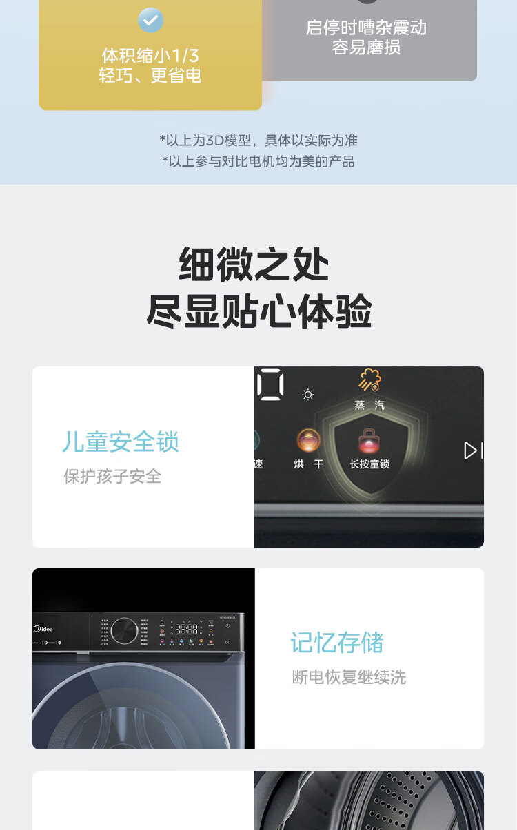 美的(Midea)滚筒洗衣机全自动 银离子杀菌 高温筒自洁 DD直驱变频电机 10公斤MG100-933IADE 单洗滚筒933IADE