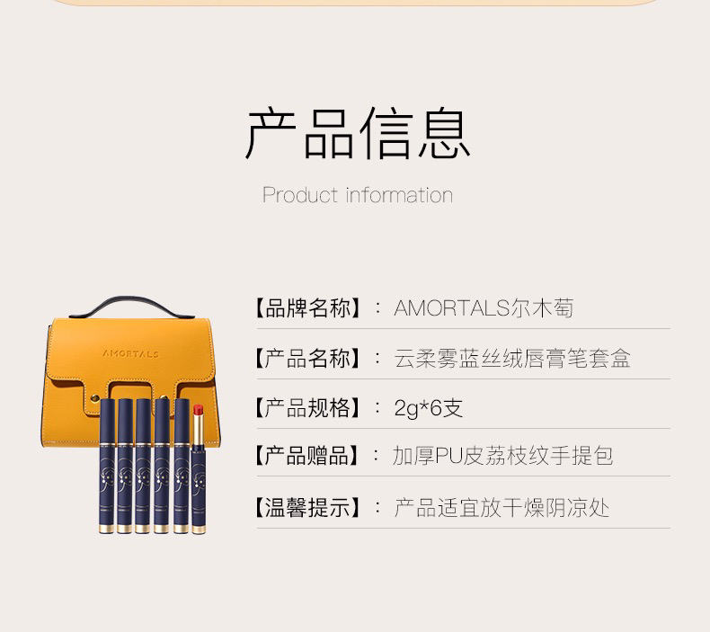 韩国尔木萄唇膏套装礼盒(6支装+手提包)