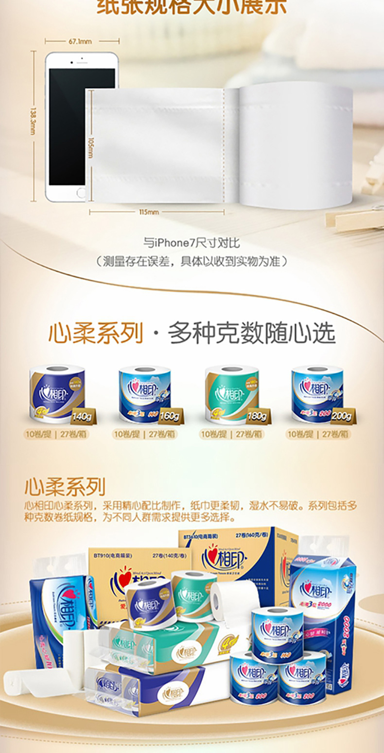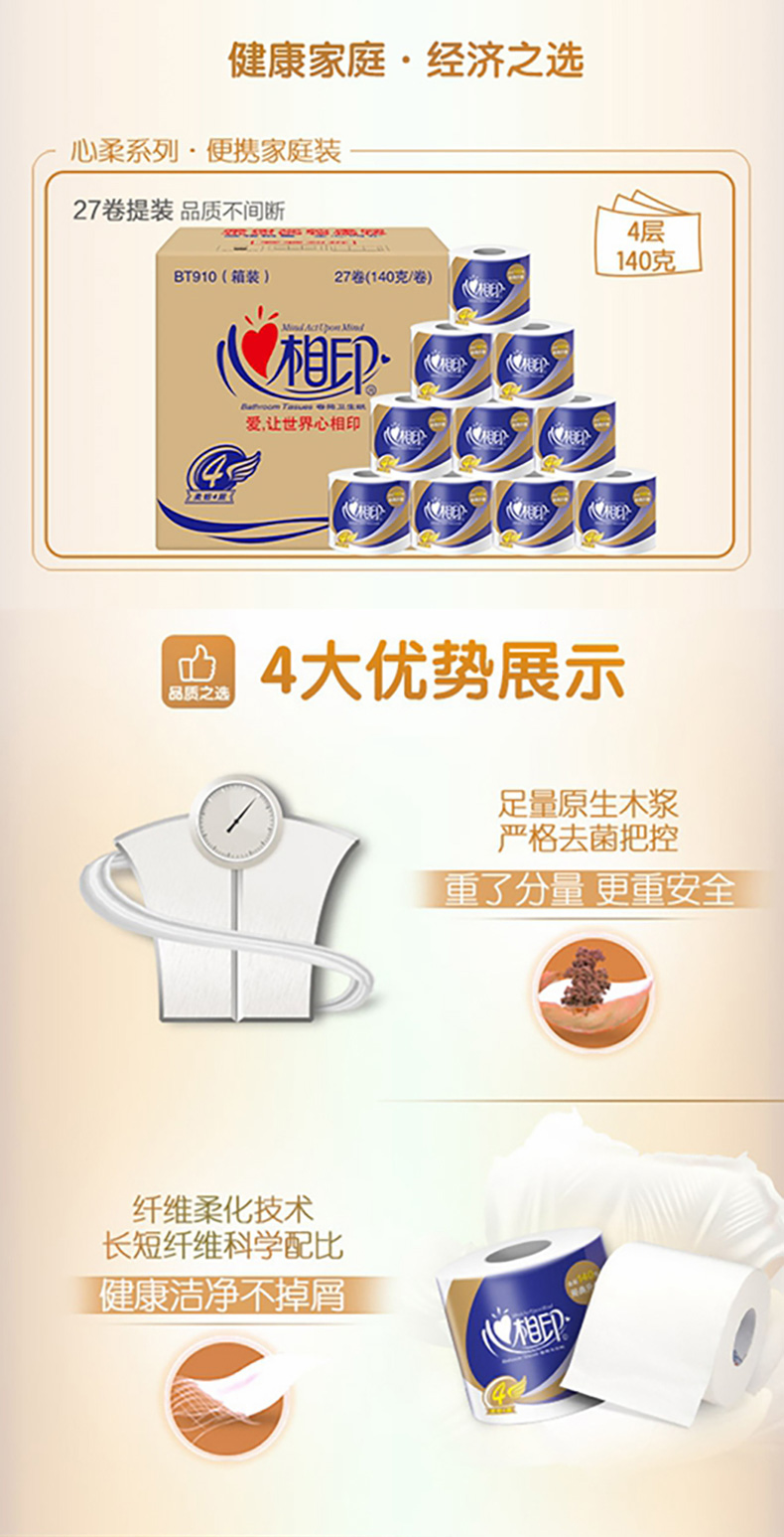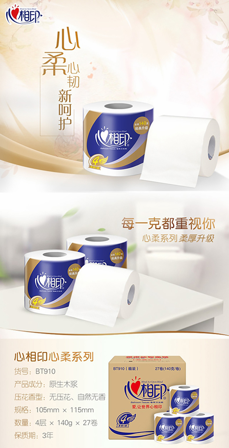 心相印 加厚四层卷筒卫生纸 140克27粒装(四层)