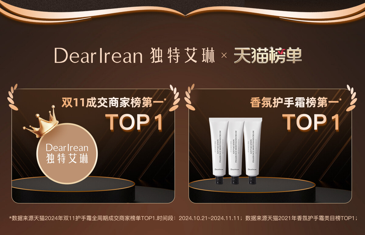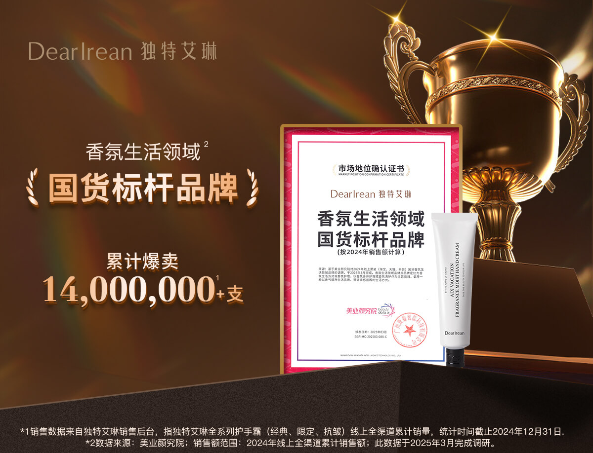 - DearIrean 独特艾琳,高定香氛生活品牌,拥有体•研究所,品牌致力于将高定香氛带入生活,同时倡导“以香之名,带给生活美好方式”的品牌理念,传递精致女性的爱、独立、自信。
