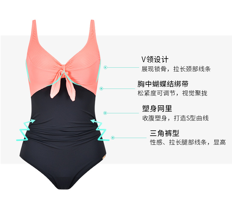 | 袖长: 无袖 | 款式: 三角连体泳衣 |