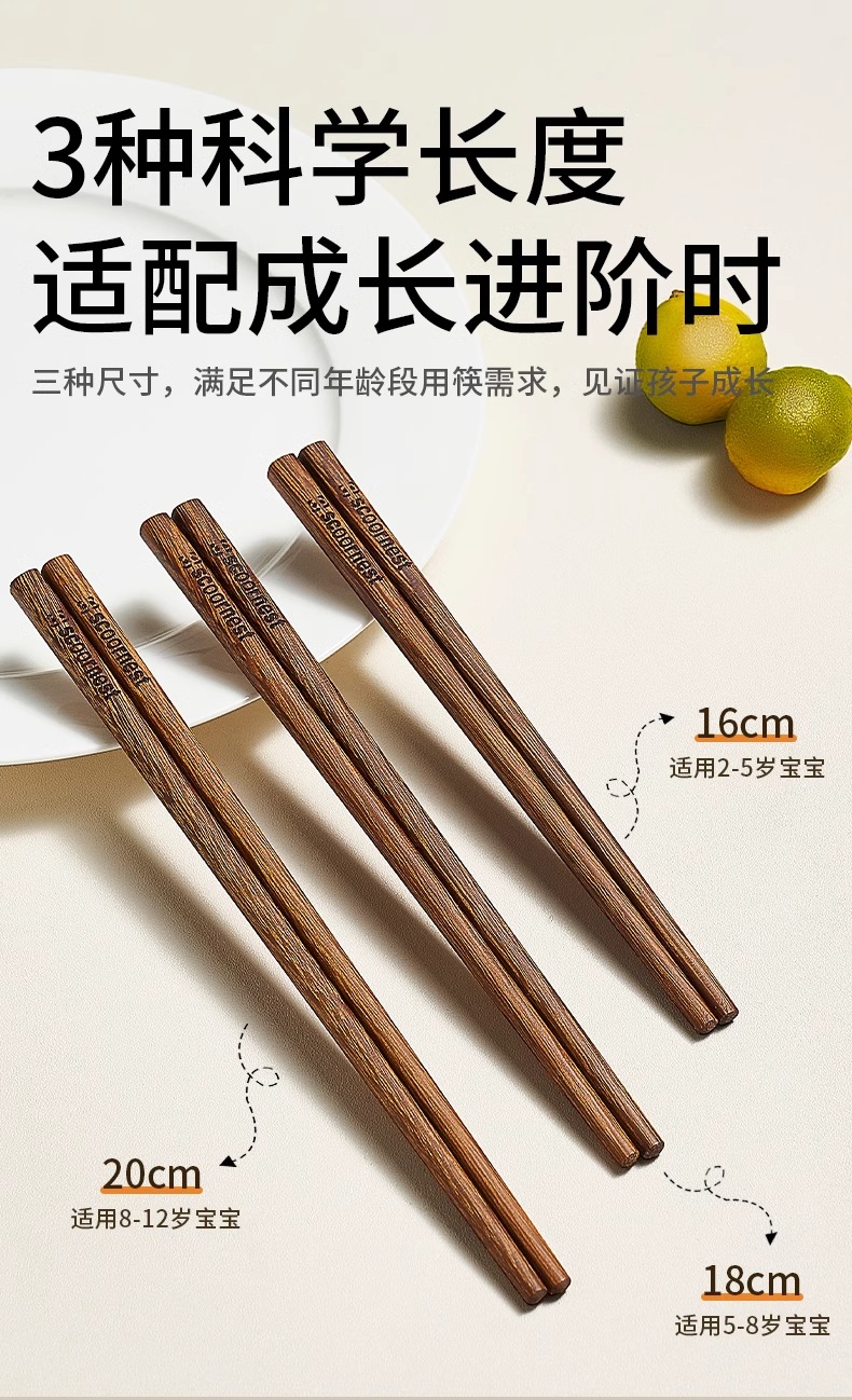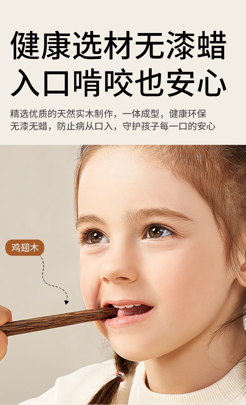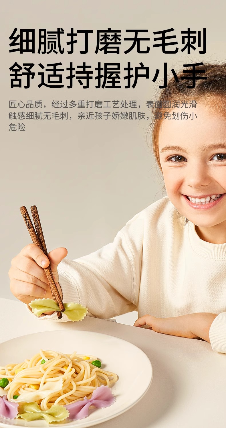 科巢儿童筷子家用高档抗菌鸡翅木实木3岁以上宝宝训练筷子小学生专用