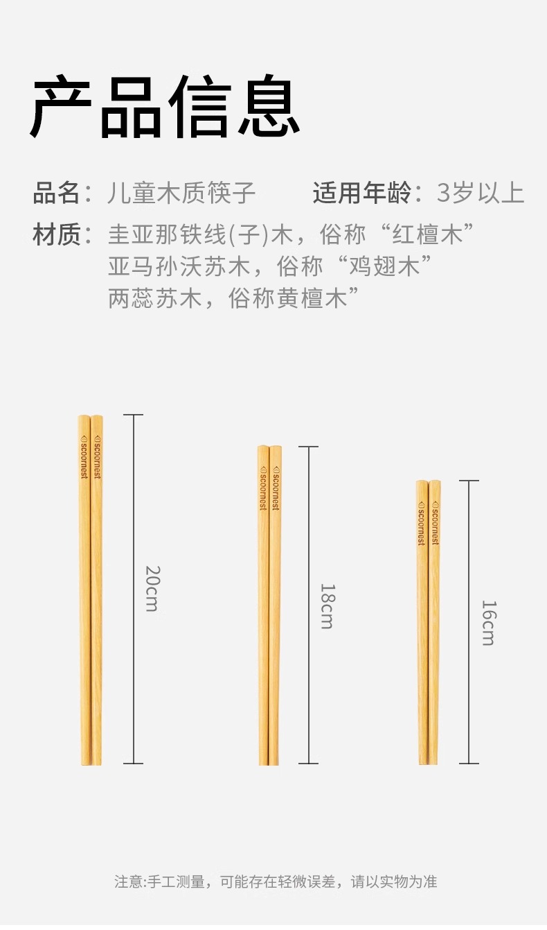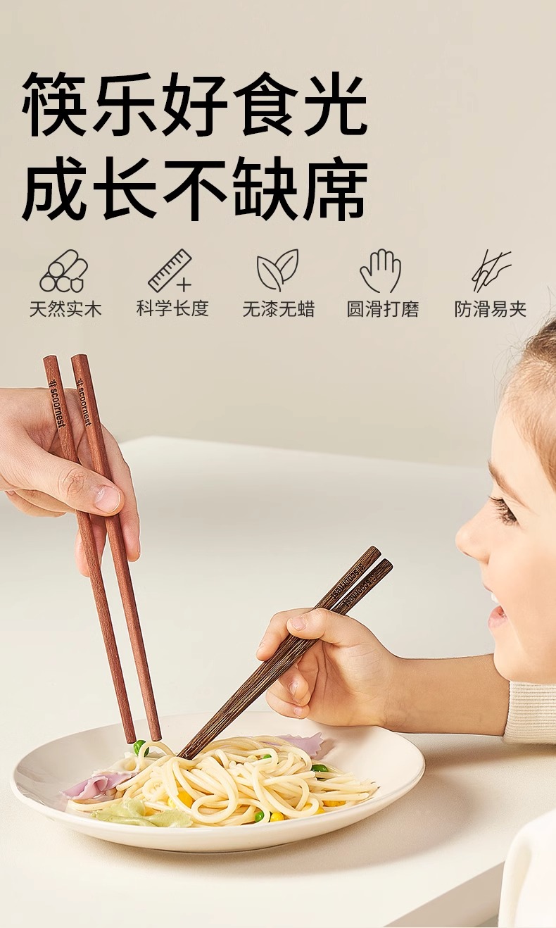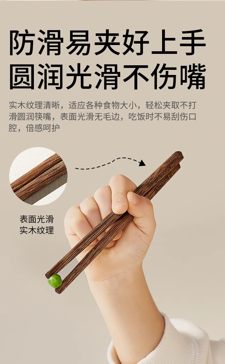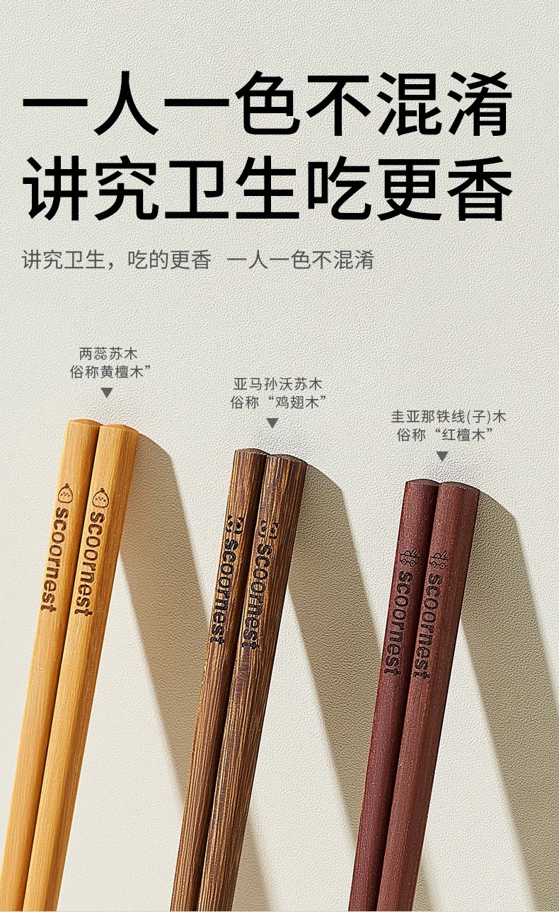 科巢儿童筷子家用高档抗菌鸡翅木实木3岁以上宝宝训练筷子小学生专用