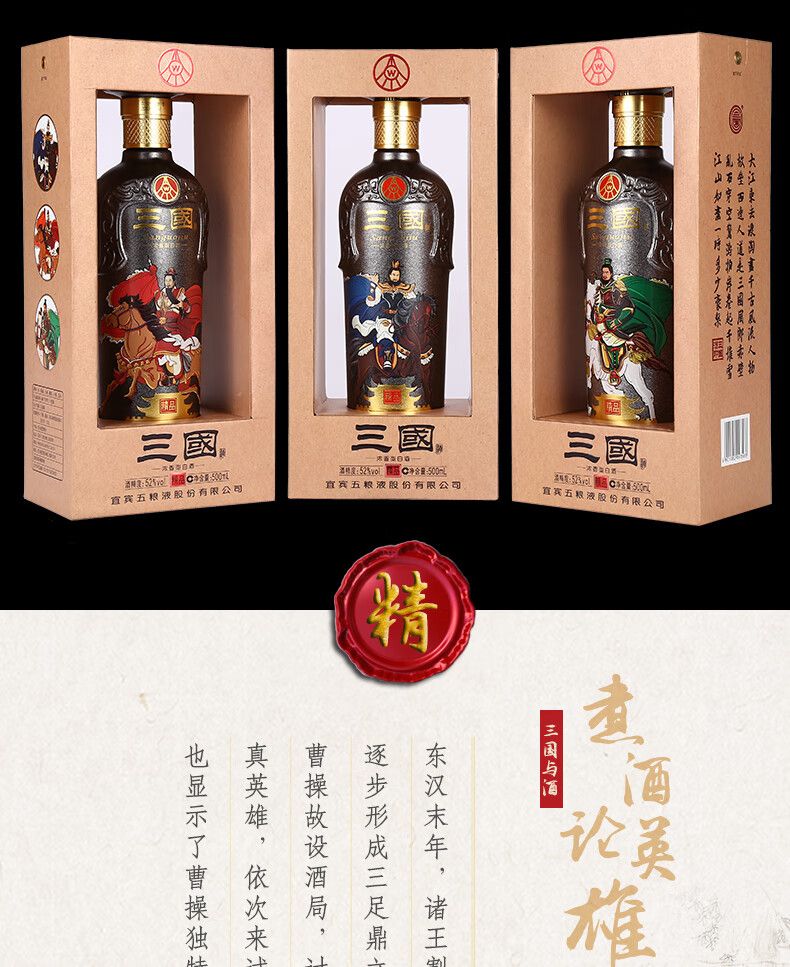 五粮液三国精品魏蜀吴 52度浓香型白酒 整箱500ml*6瓶包邮
