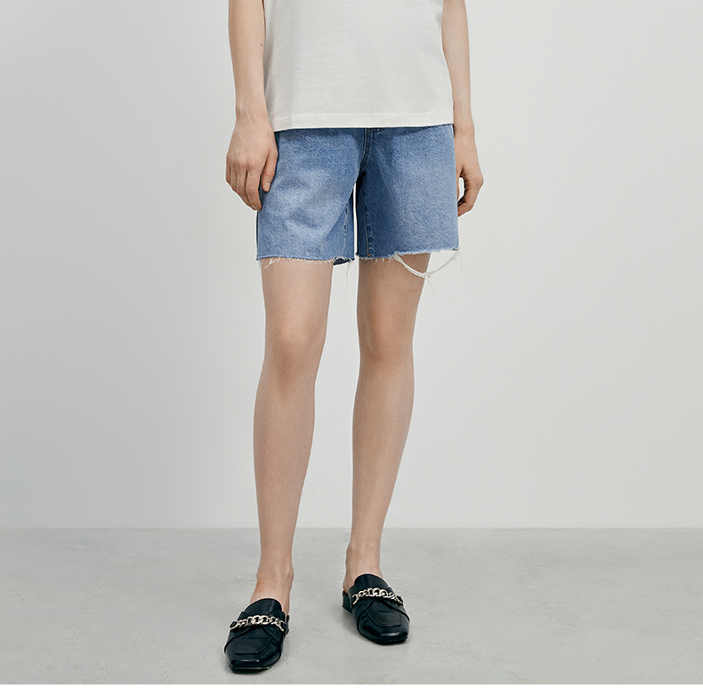 嫚熙孕妇裤女毛边牛仔短阔腿裤孕期外穿托腹显身材裤子春秋新款
