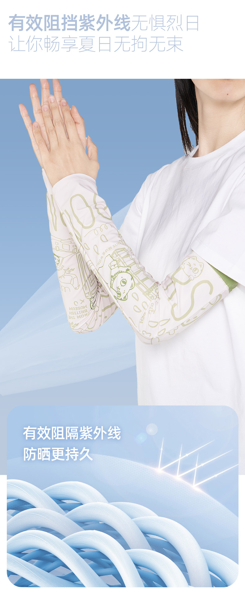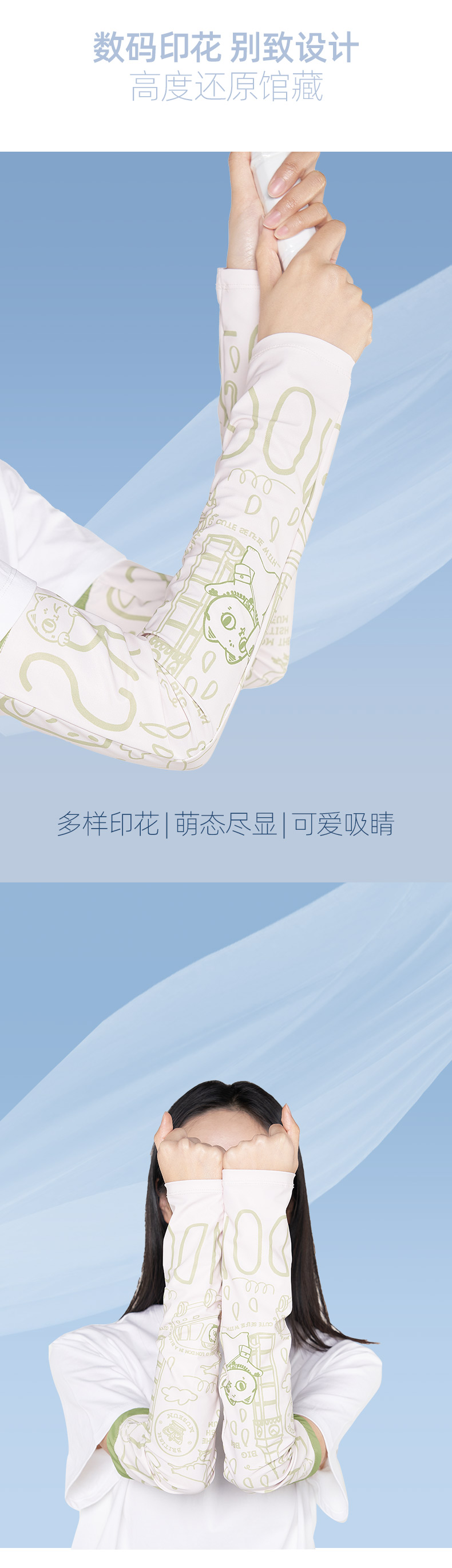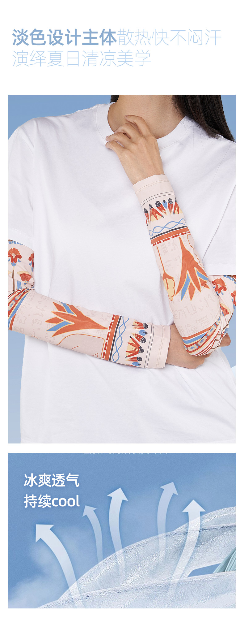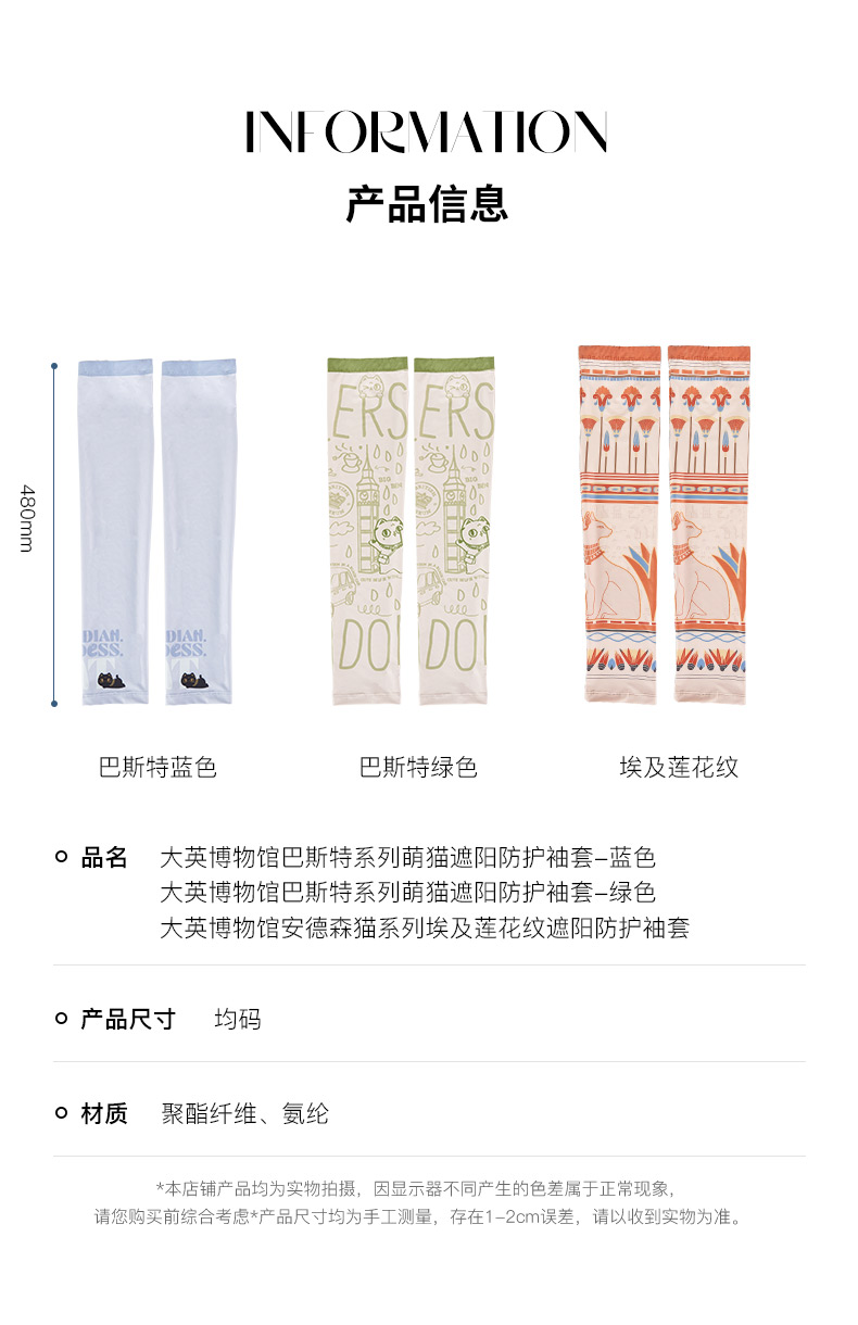 大英博物馆 巴斯特系列萌猫遮阳防护袖套 蓝色 绿色 埃及莲花纹遮阳防护袖套