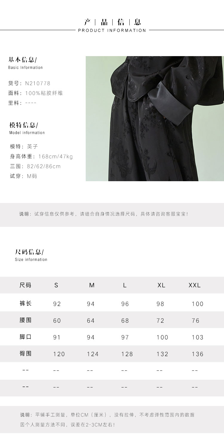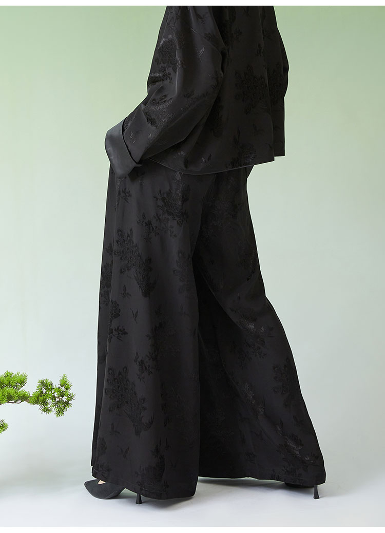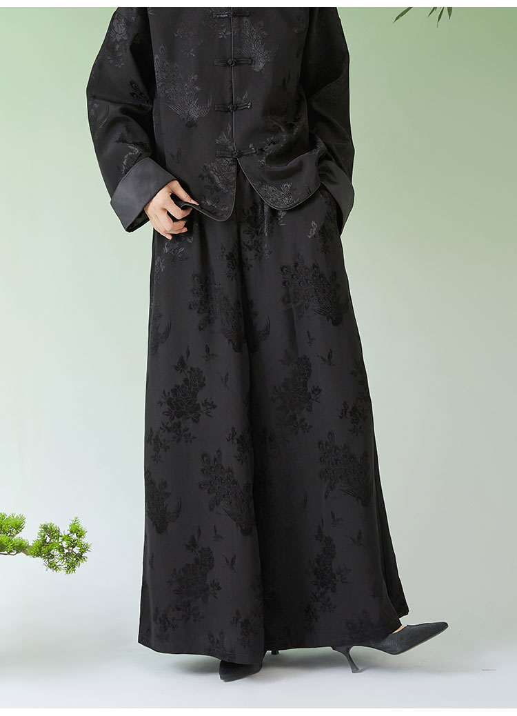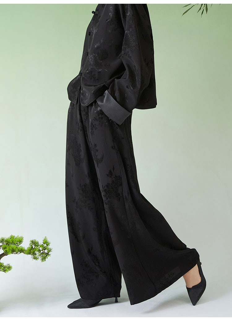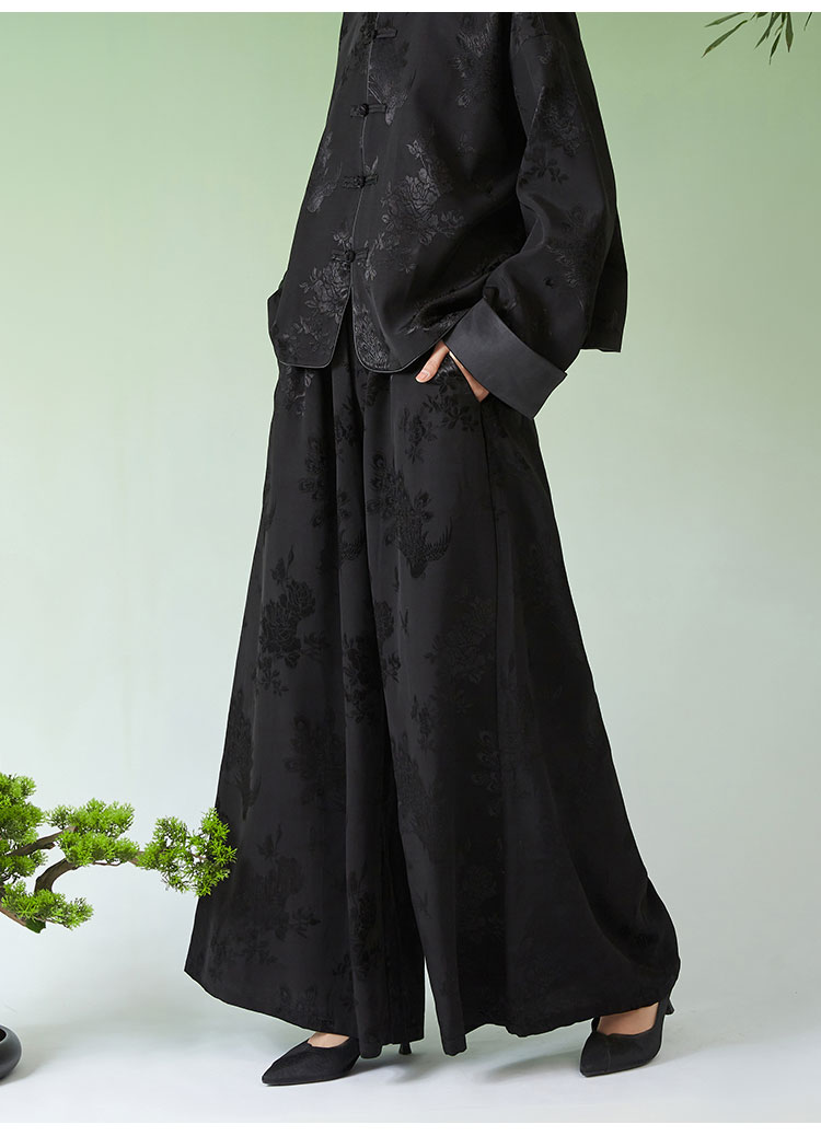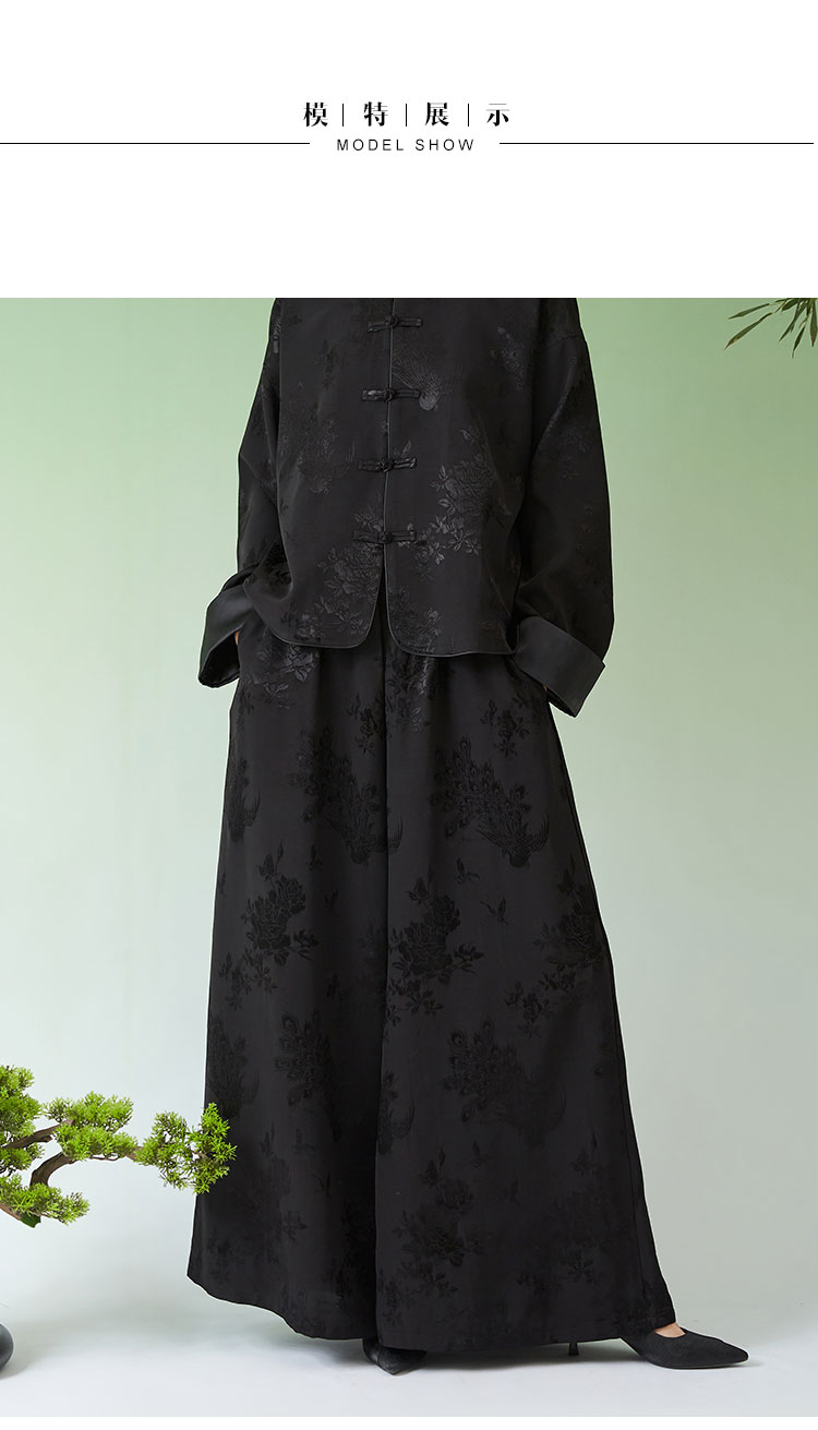 春夏女装新款人丝提花中式宽松休闲阔腿裤N210778