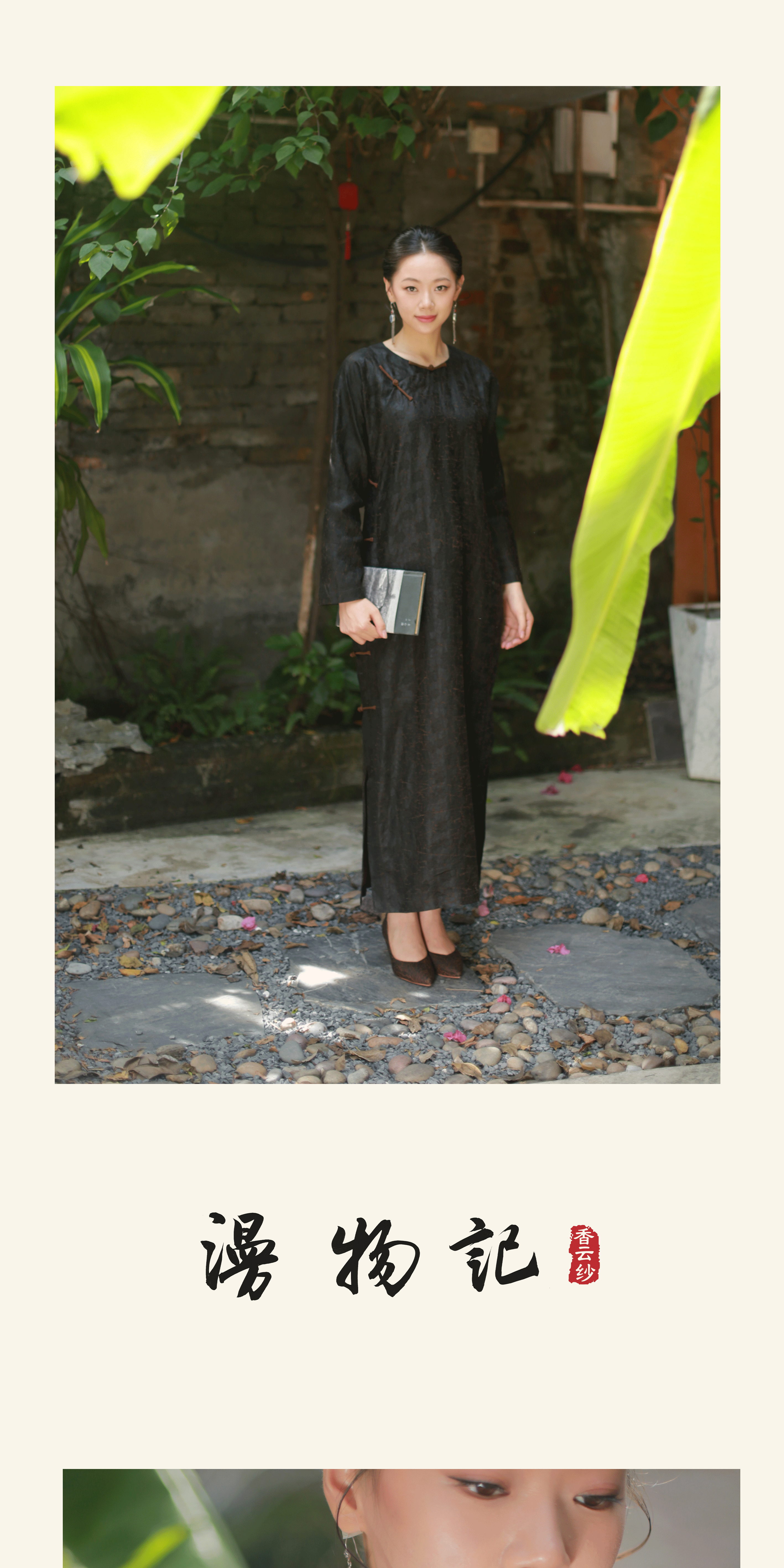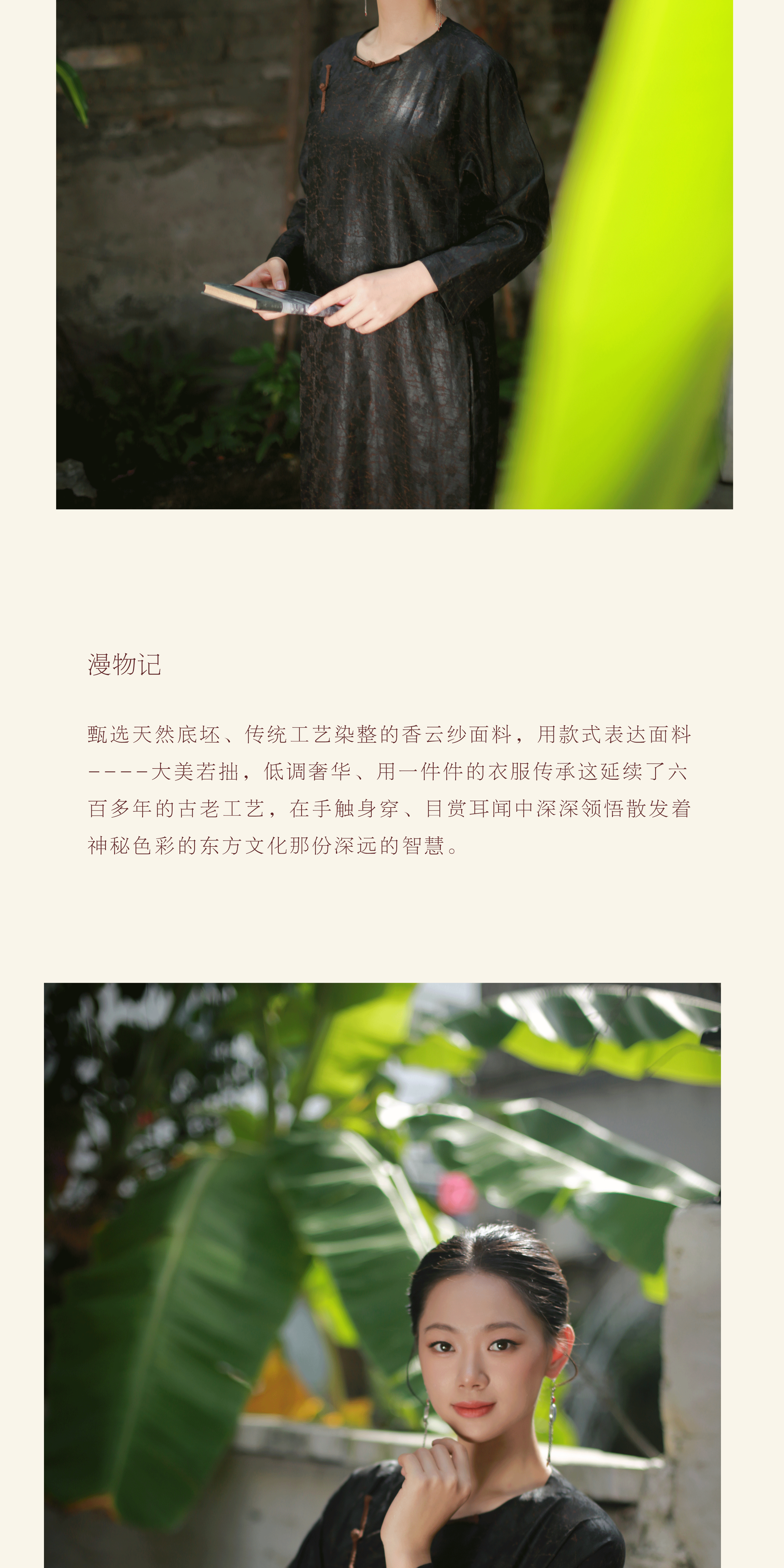 漫物记重磅香云纱滚边翻领大衣XYS-113