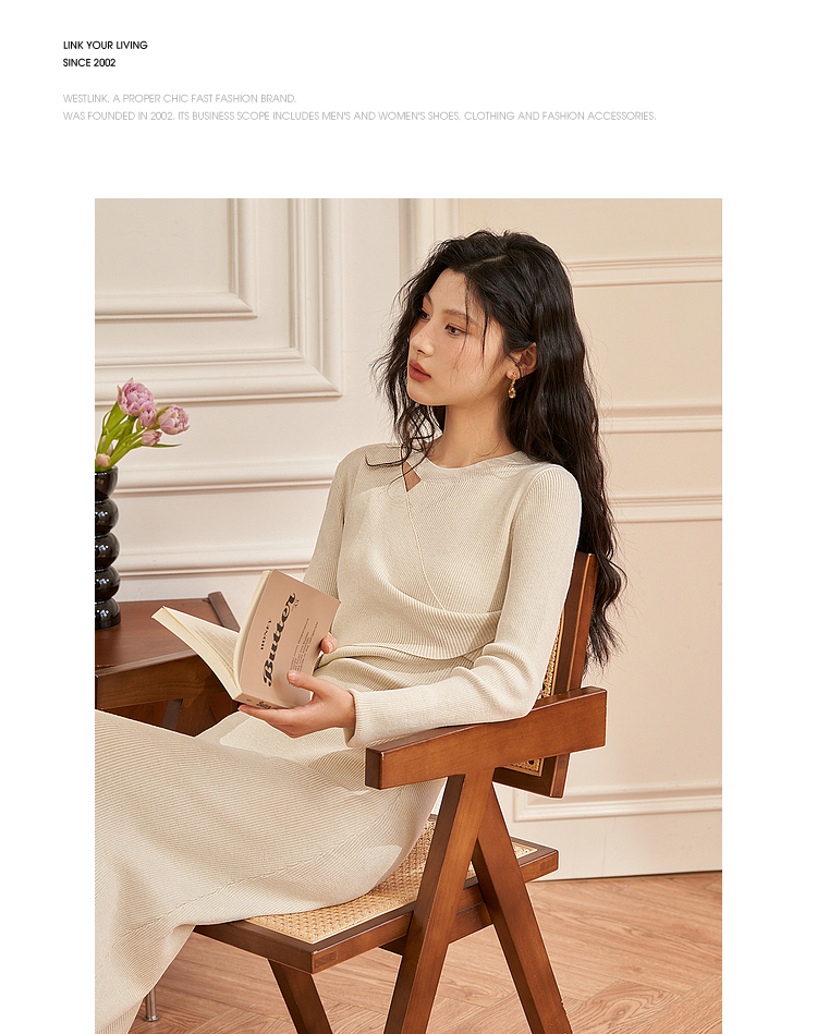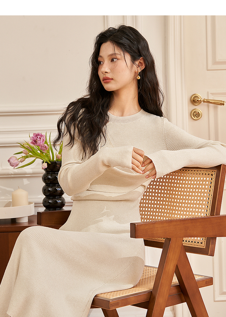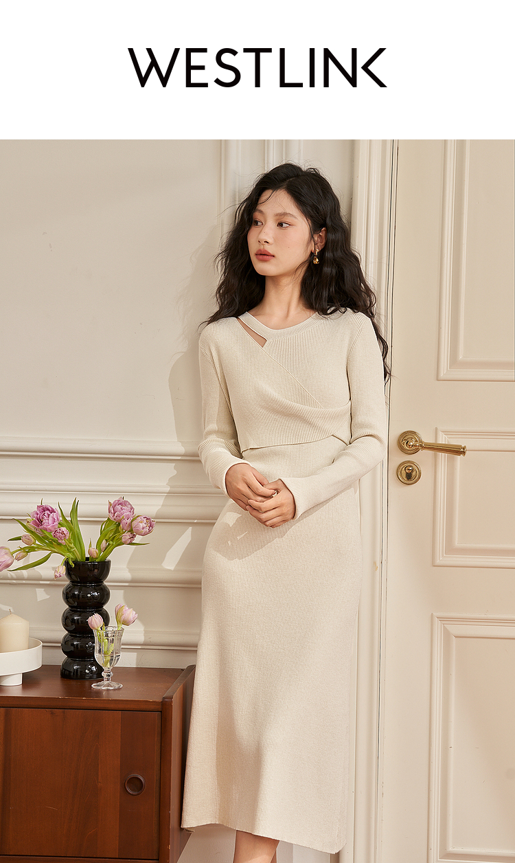 法式针织连衣裙女秋季新款气质小众交叉设计感长裙V1938438