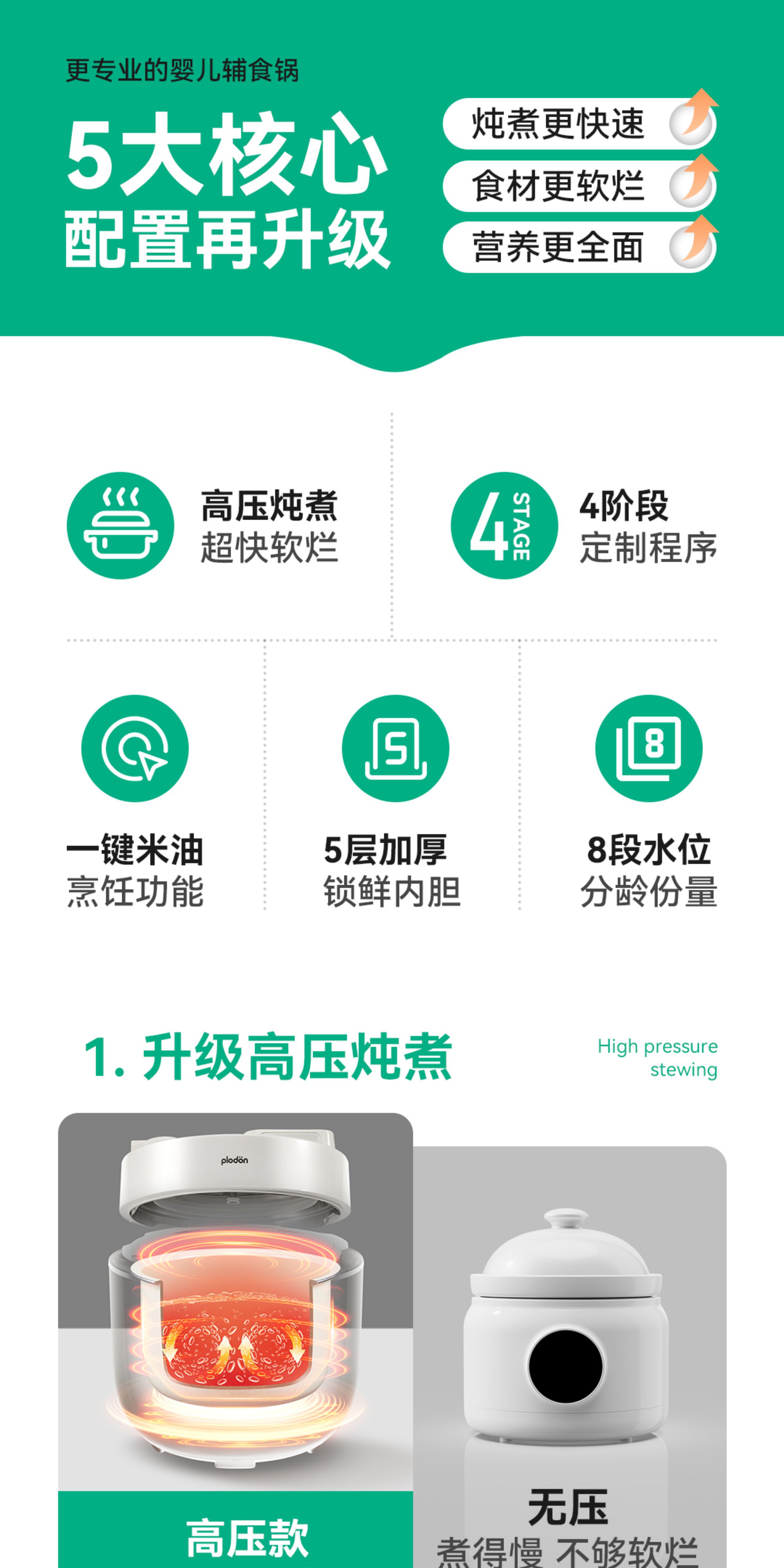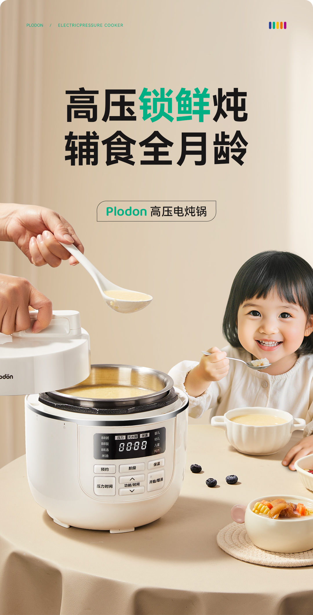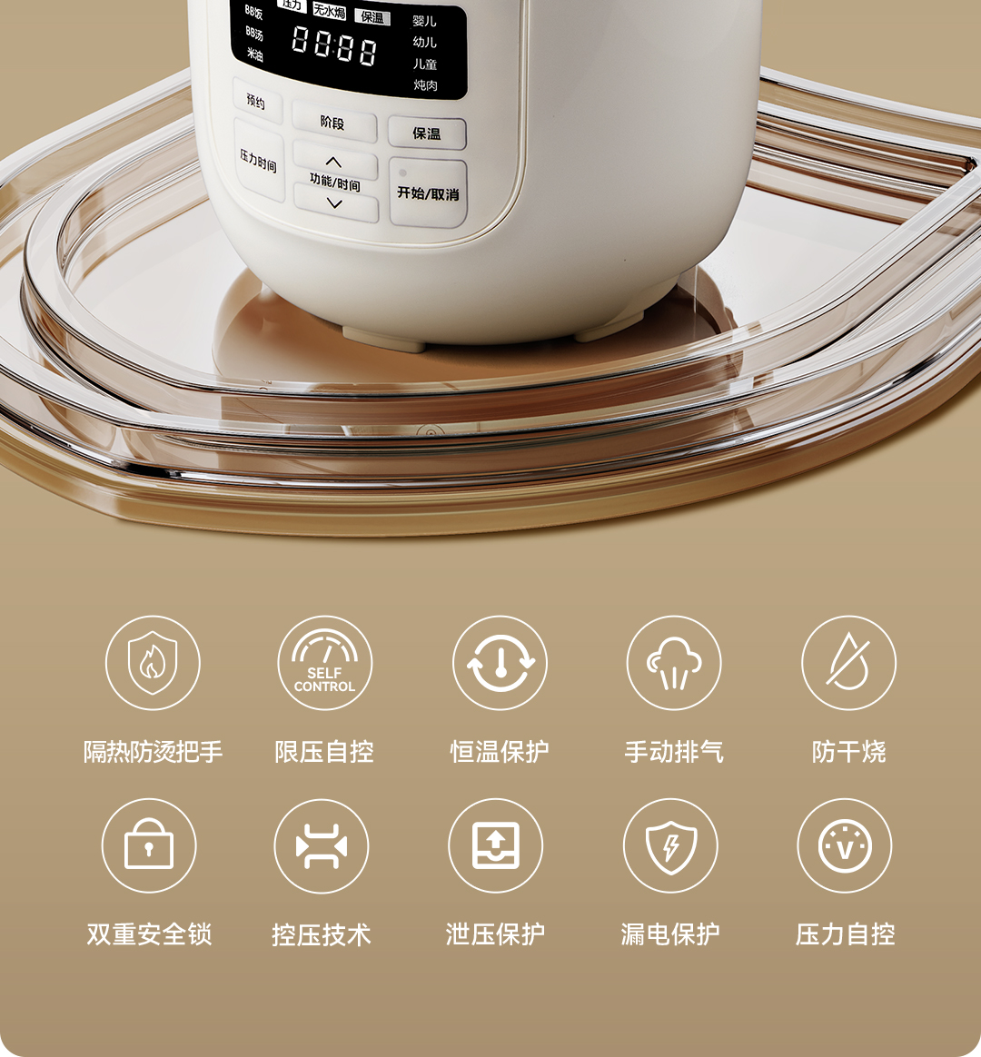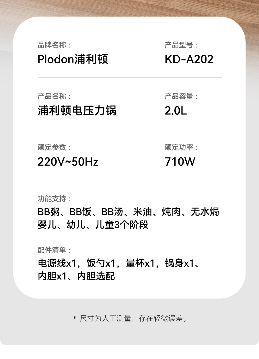 浦利顿无涂层电压力锅家用小型迷你2L高压锅PLD-KD-A202