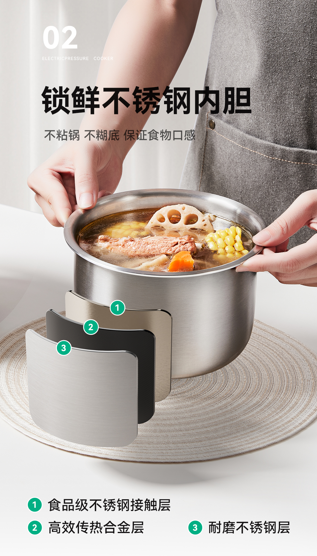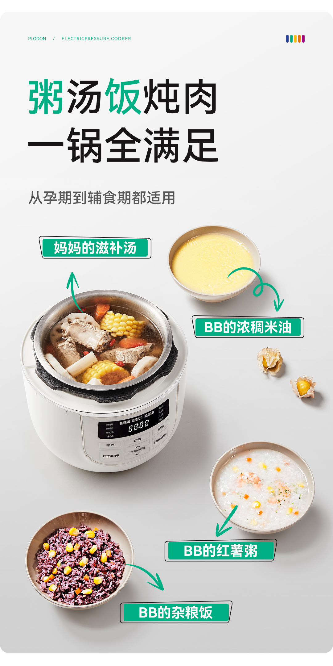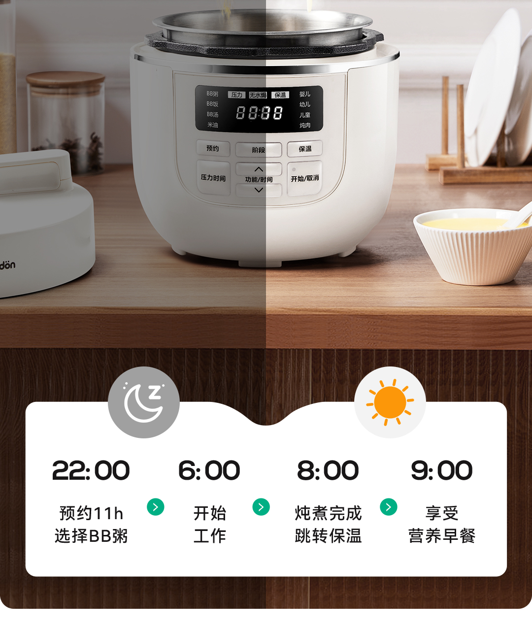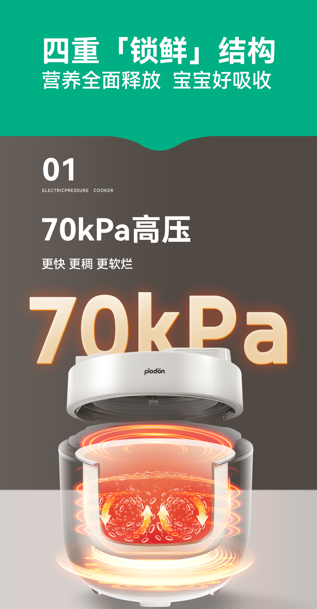 浦利顿无涂层电压力锅家用小型迷你2L高压锅PLD-KD-A202