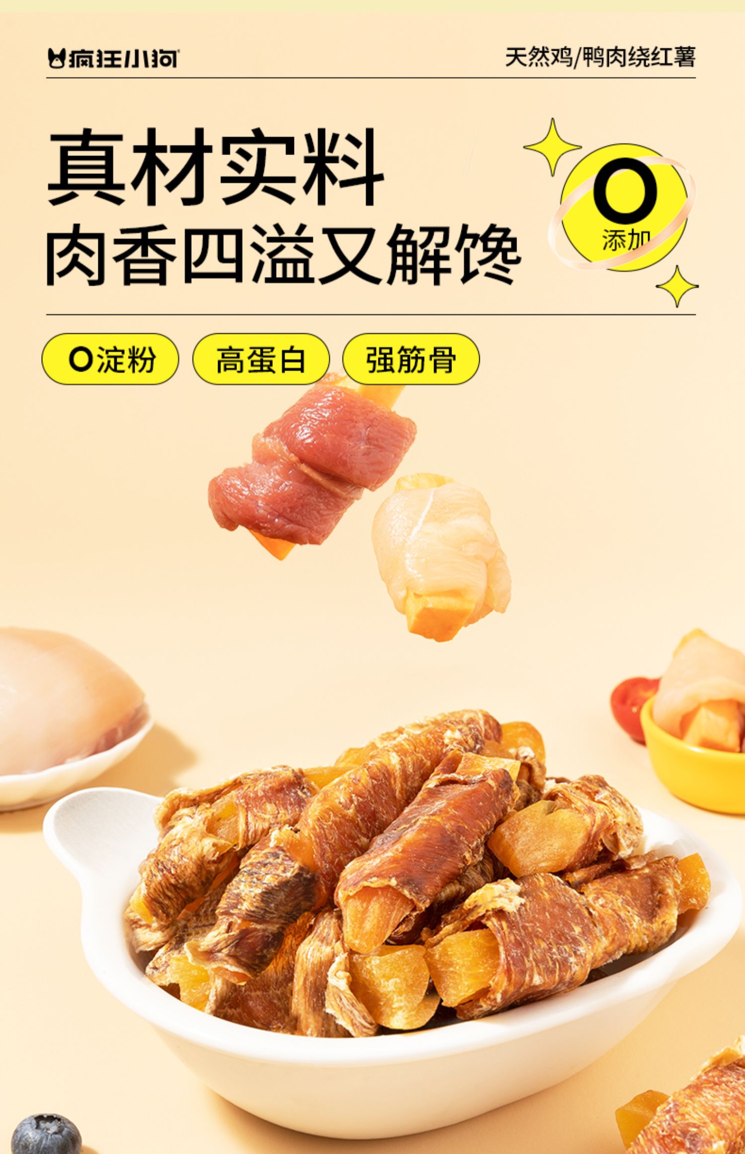 疯狂小狗 鸡肉鸭肉绕红薯150g 自然香甜清热助消化