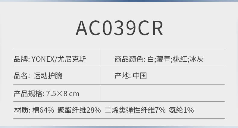 YONEX/尤尼克斯官网 AC039CR 运动护腕吸汗透气护具
