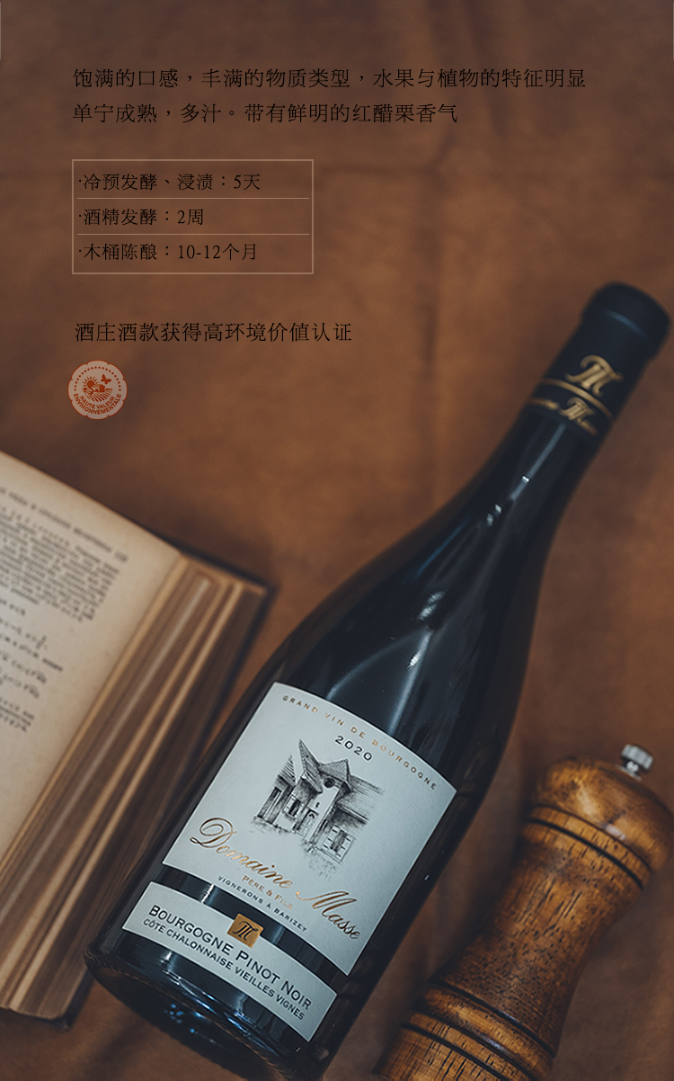 【高环境价值HVE认证款】摩希父子庄园老藤黑皮诺干红葡萄酒 AOP等级 13%vol