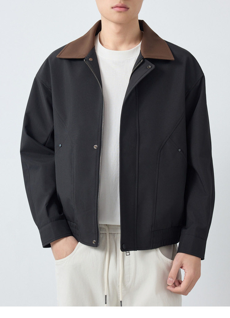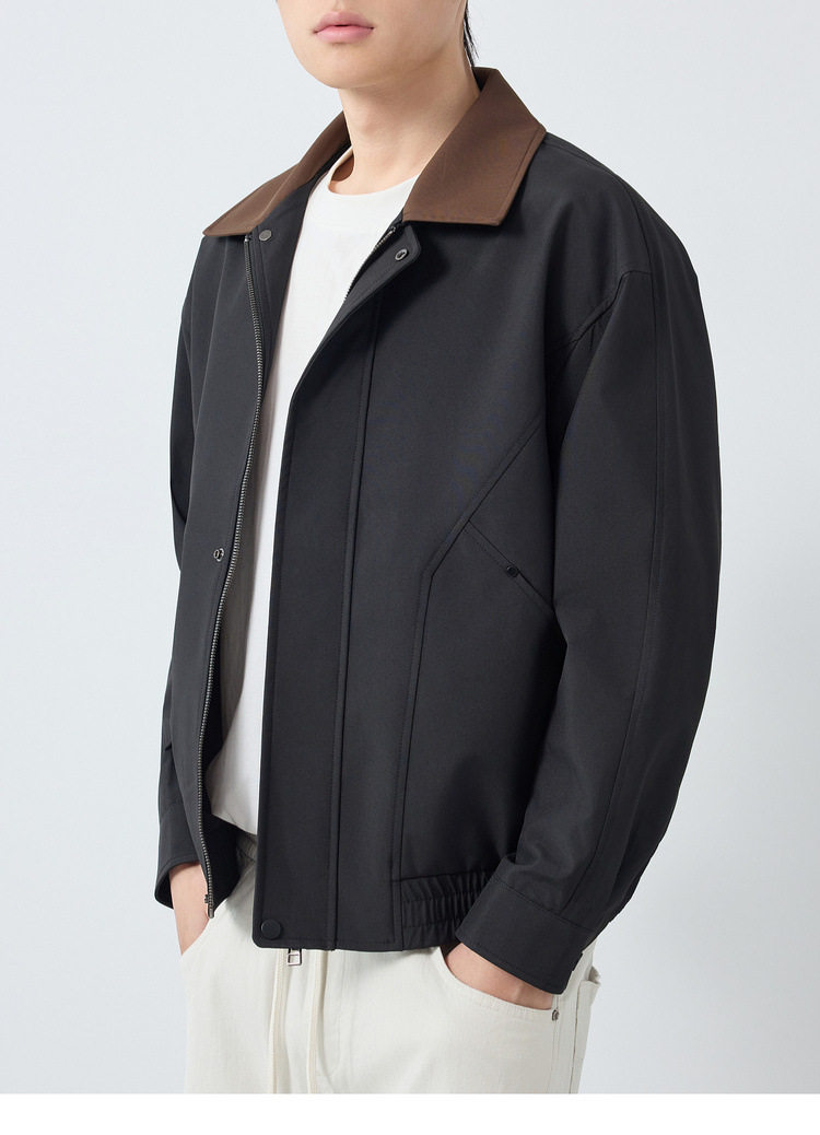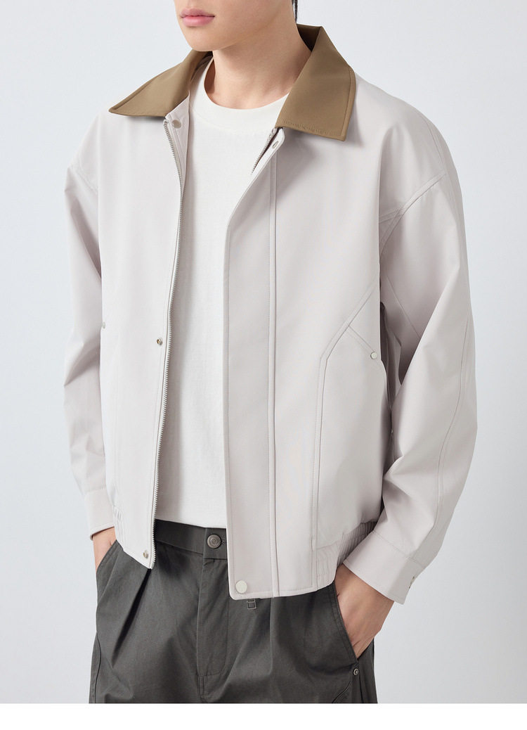 墨麦客高智通勤撞色翻领外套男2026春季新款巴恩风男士夹克81617.