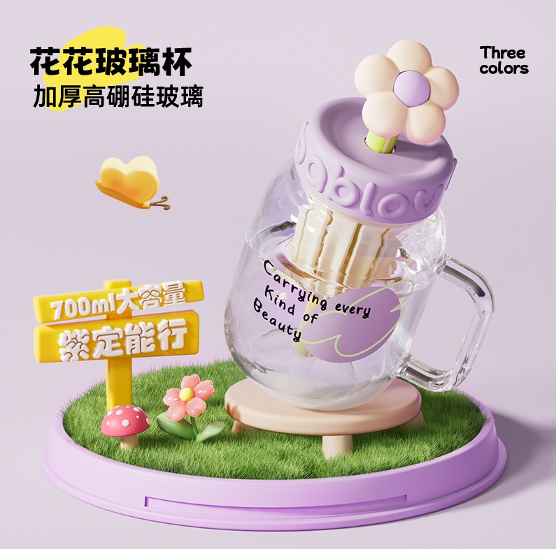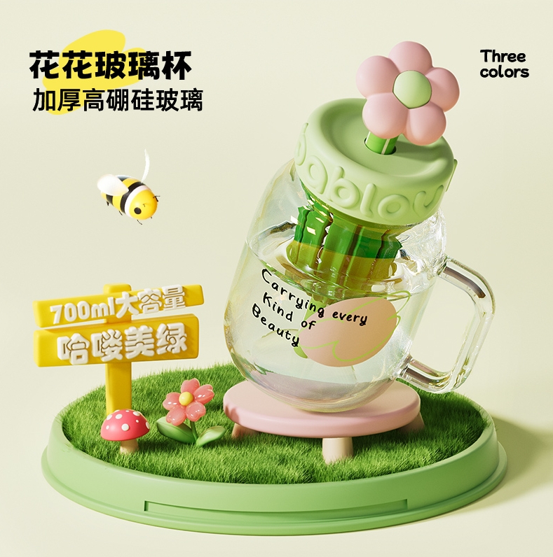 bablov玻璃杯女生高颜值茶水分离泡茶杯子大容量办公室带吸管水杯