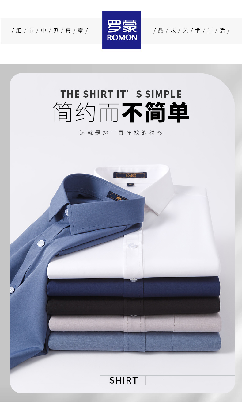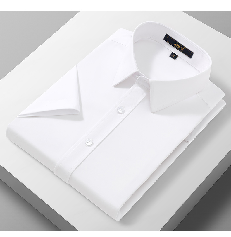 【弹力好穿】罗蒙夏季纯色短袖衬衫男士商务休闲正装通勤上班工装衬衣男上衣