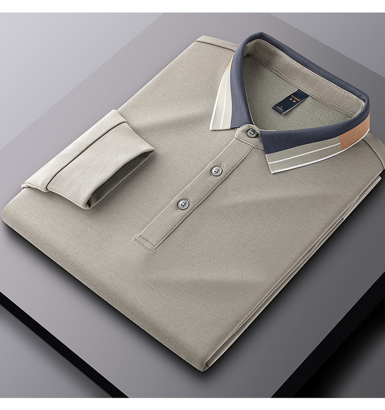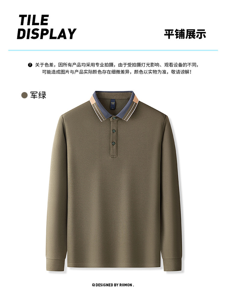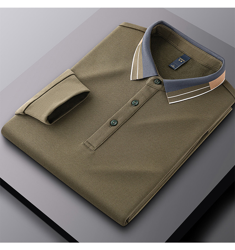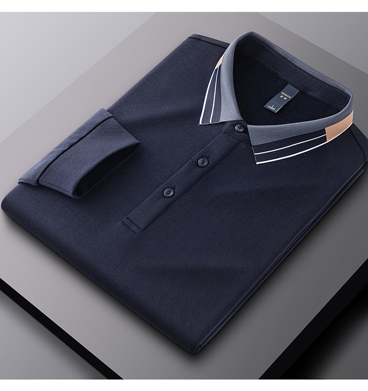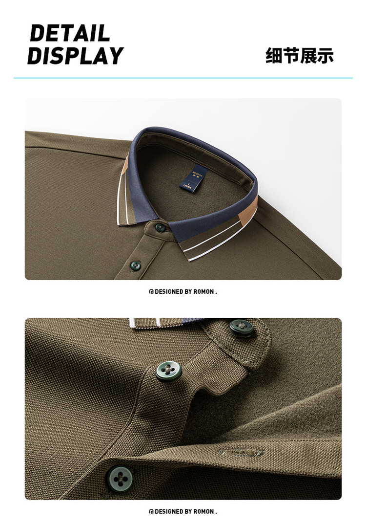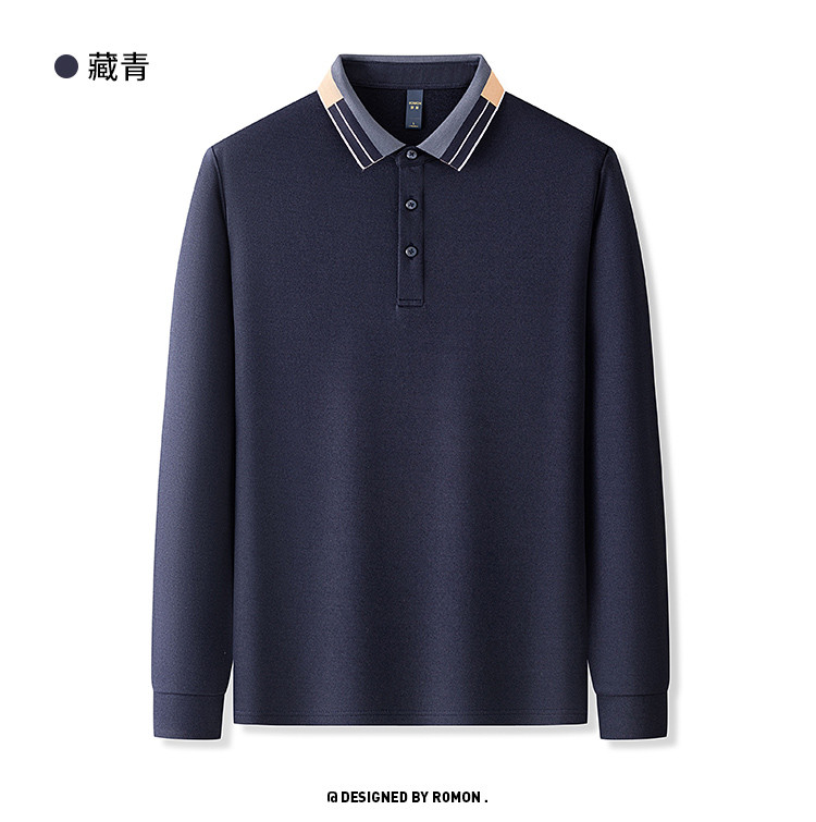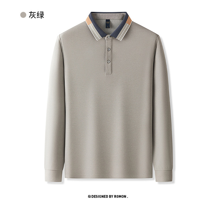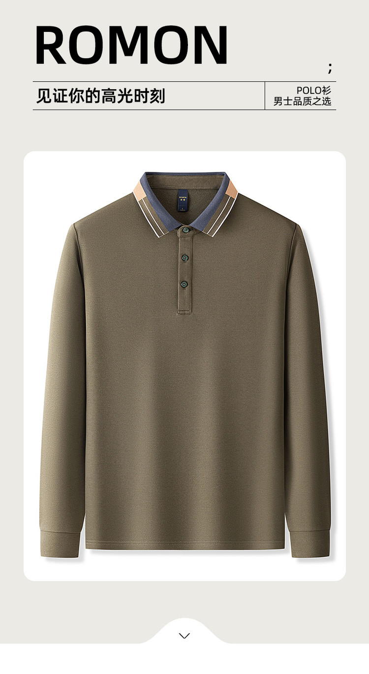 【羊毛蚕丝混纺 磨毛保暖】罗蒙秋冬男装长袖POLO衫双面磨毛撞色领翻领长袖t恤