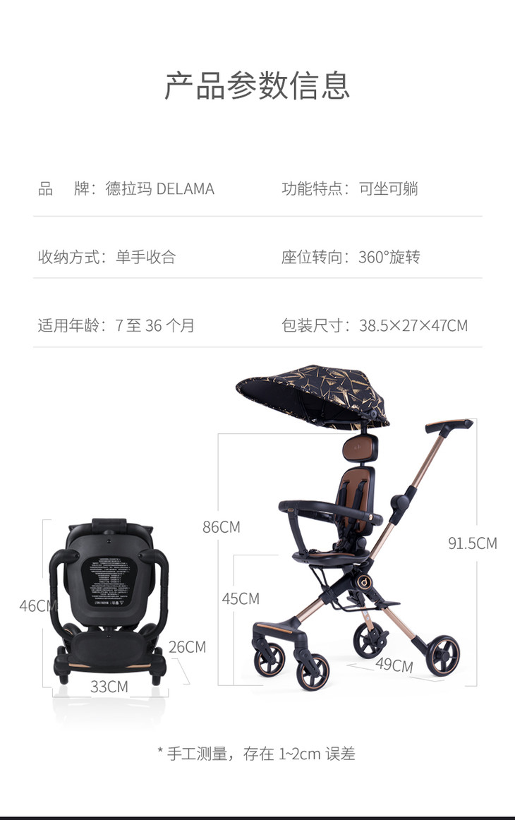 【Delama德拉玛】S1系列 遛娃神器 轻便折叠可坐可躺四轮高景观遛娃