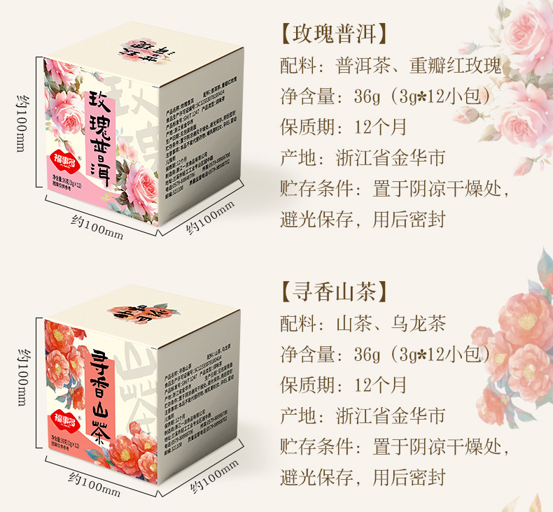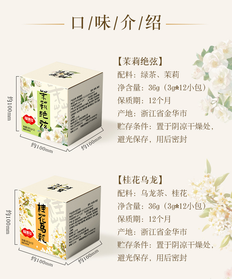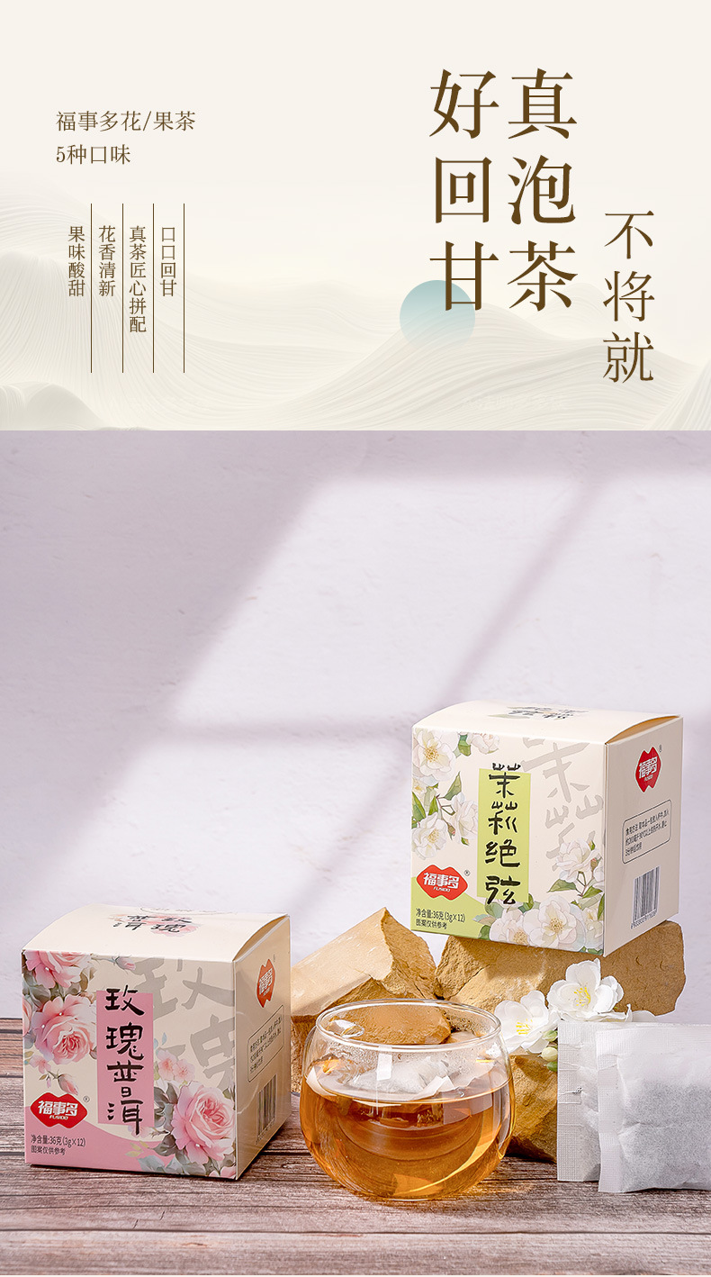 「9.9到手!五款口味」福事多茉莉花茶白桃乌龙玫瑰普洱桂花果茶12袋东方下午茶盒装茶饮
