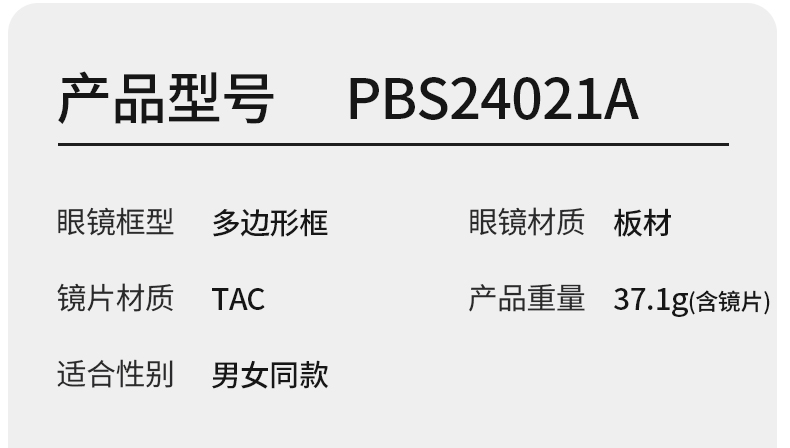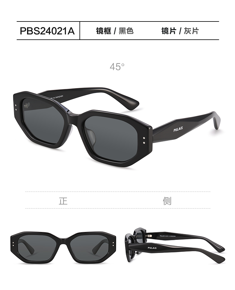 普莱斯新款太阳镜 PBS24021A 美式复古墨镜 立体切边修饰脸型 板材镜框TAC偏光镜片 男女同款 三色可选