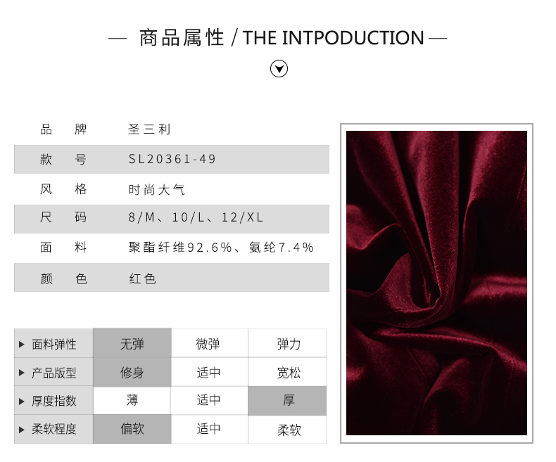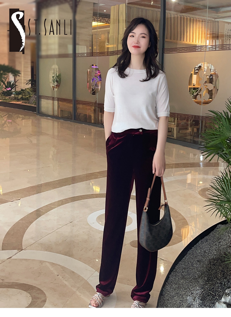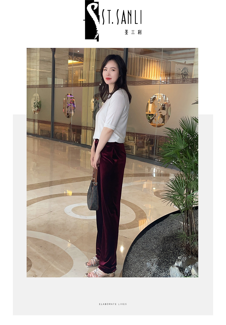圣三利女装 时尚优雅金丝绒直筒裤SL2036149