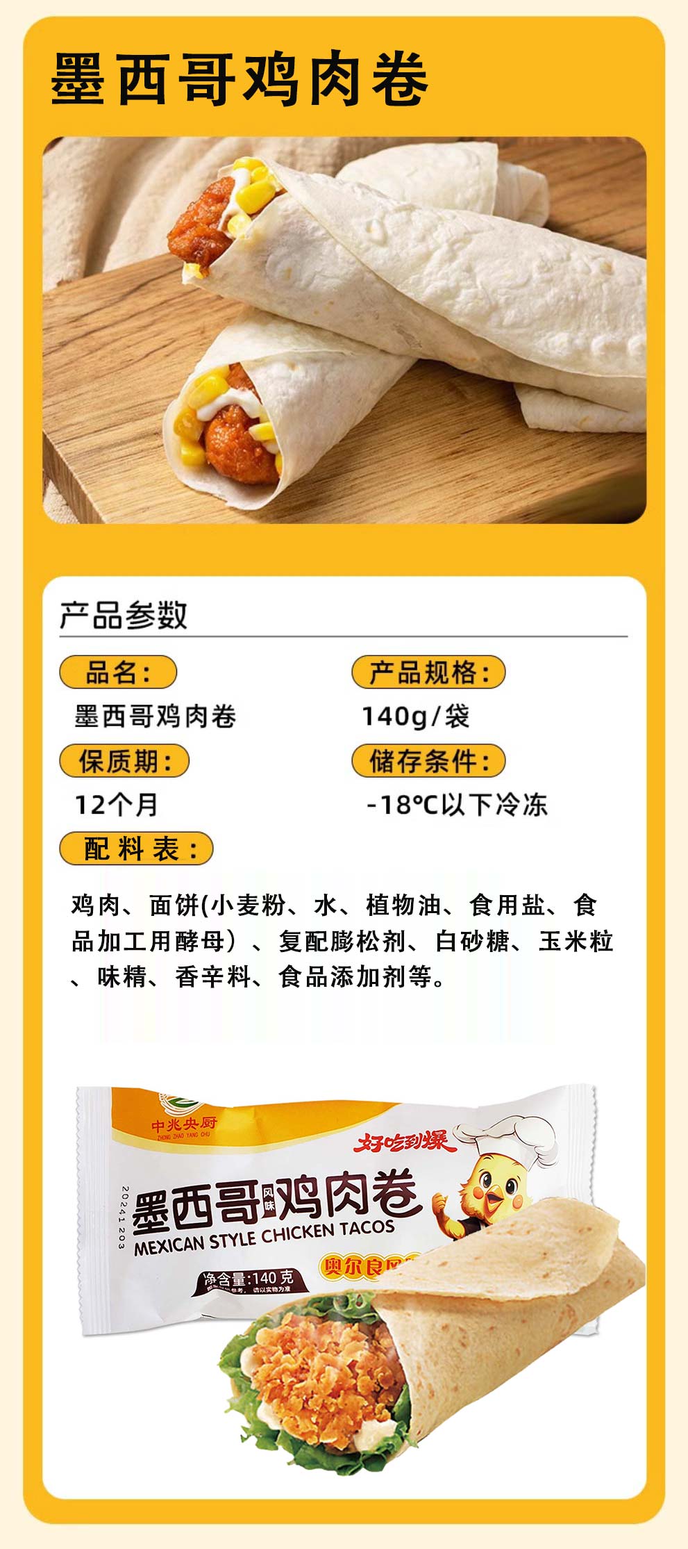 【买1送1】中兆央厨墨西哥鸡肉卷 140g/袋 60袋/件