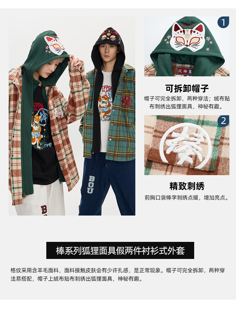 ONIARAI/鬼洗秋冬新棒系列狐狸面具假两件衬衫式外套男女 N340225
