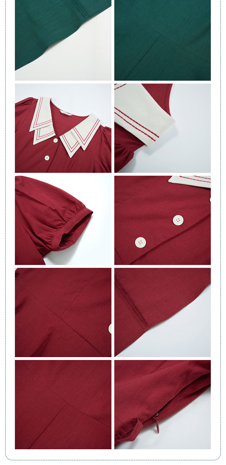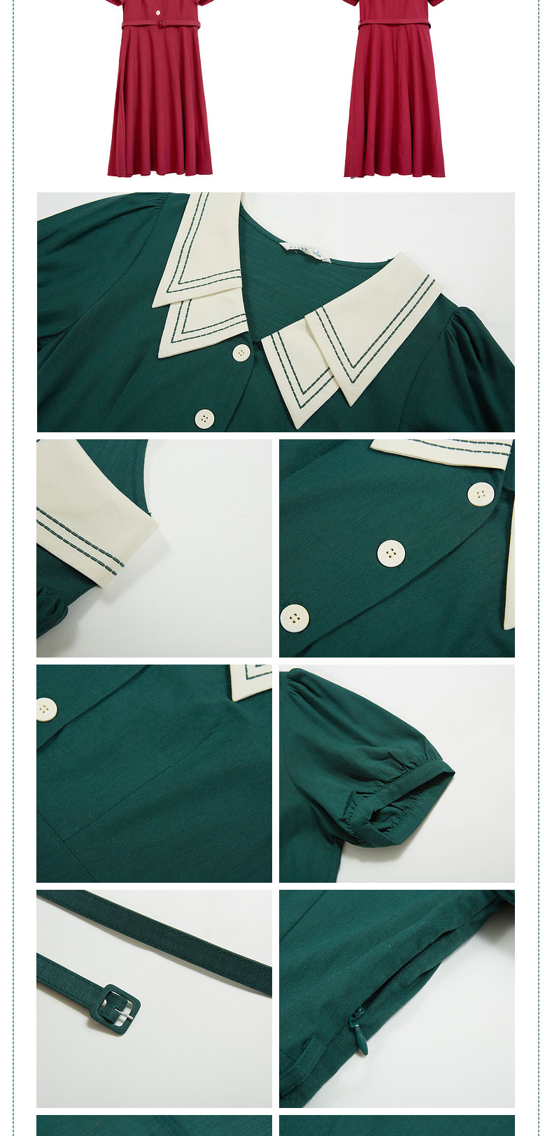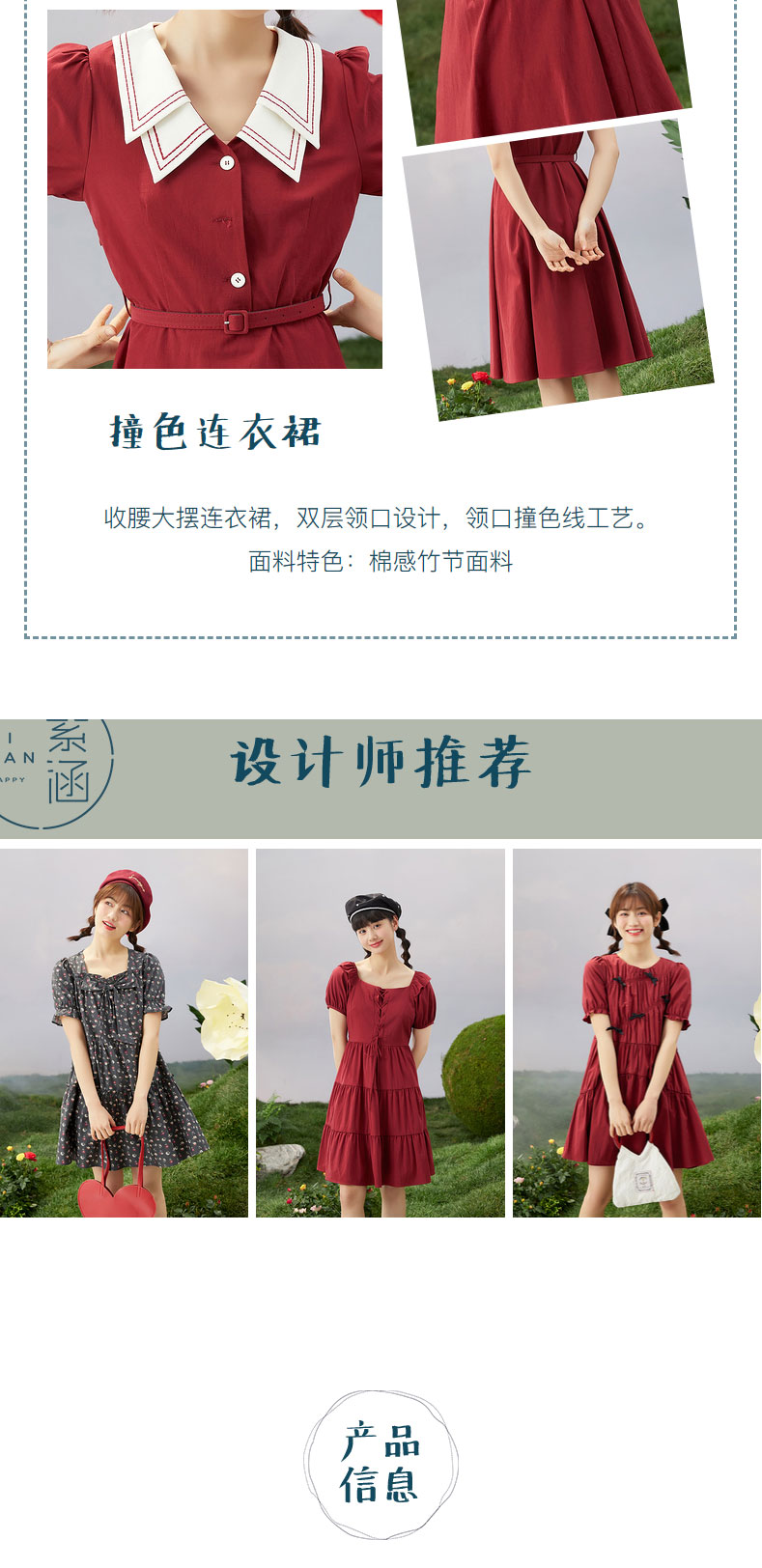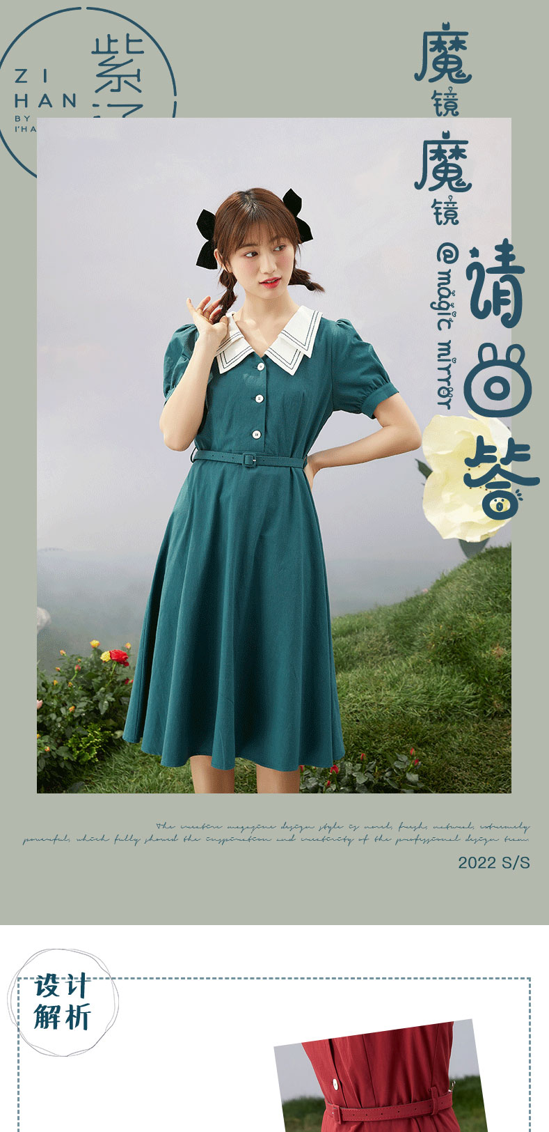 ZIHAN紫涵收腰大摆连衣裙女2022夏季新款气质收腰撞色双层领长裙泡泡袖Z2Z03BS156