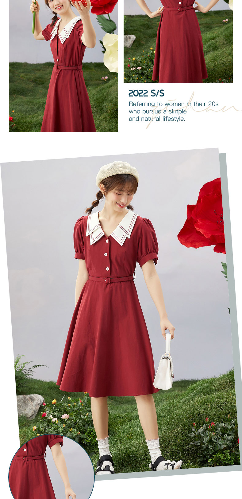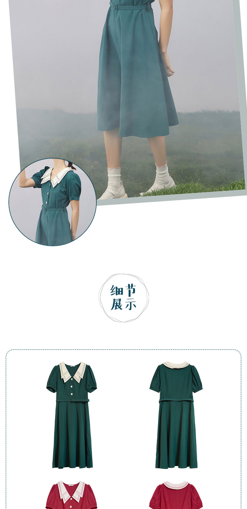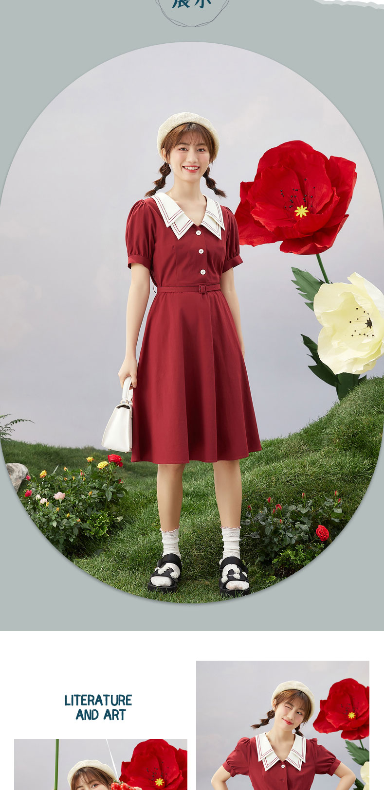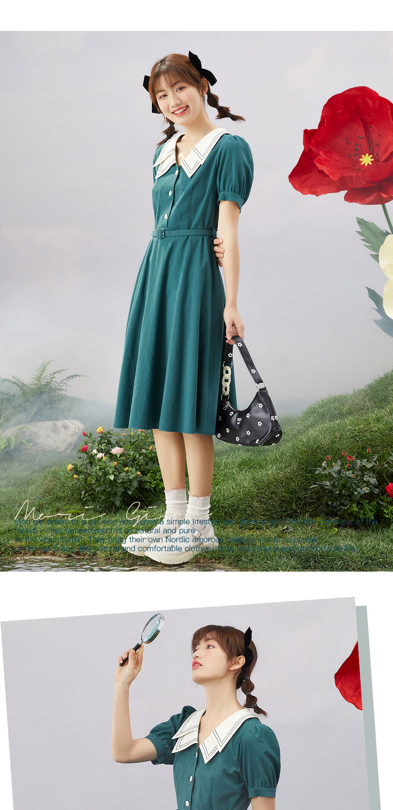 ZIHAN紫涵收腰大摆连衣裙女2022夏季新款气质收腰撞色双层领长裙泡泡袖Z2Z03BS156