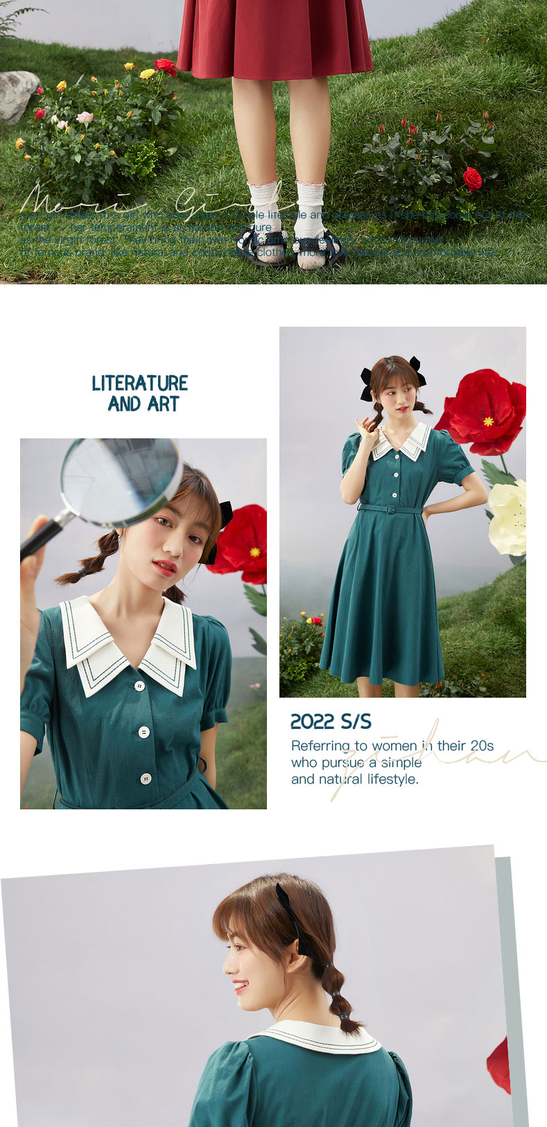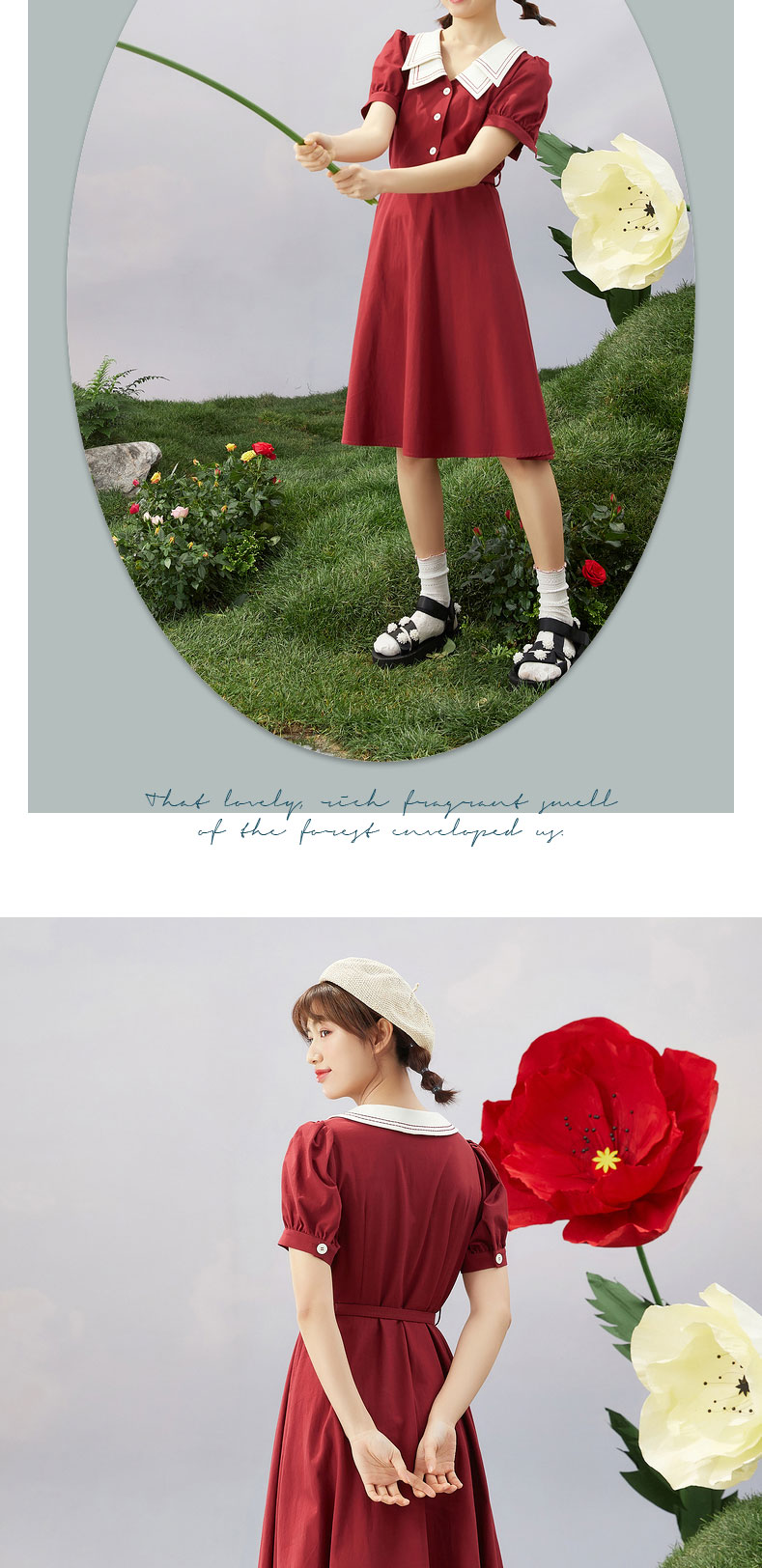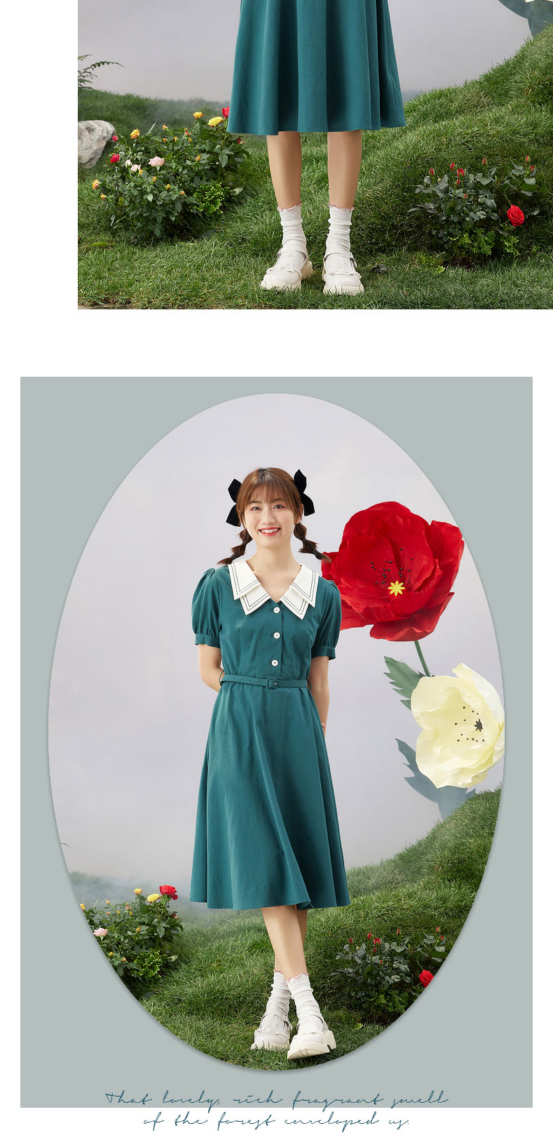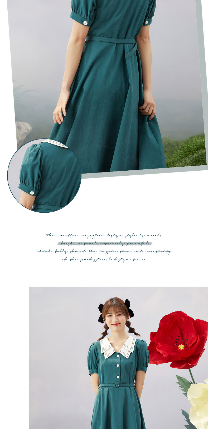 ZIHAN紫涵收腰大摆连衣裙女2022夏季新款气质收腰撞色双层领长裙泡泡袖Z2Z03BS156