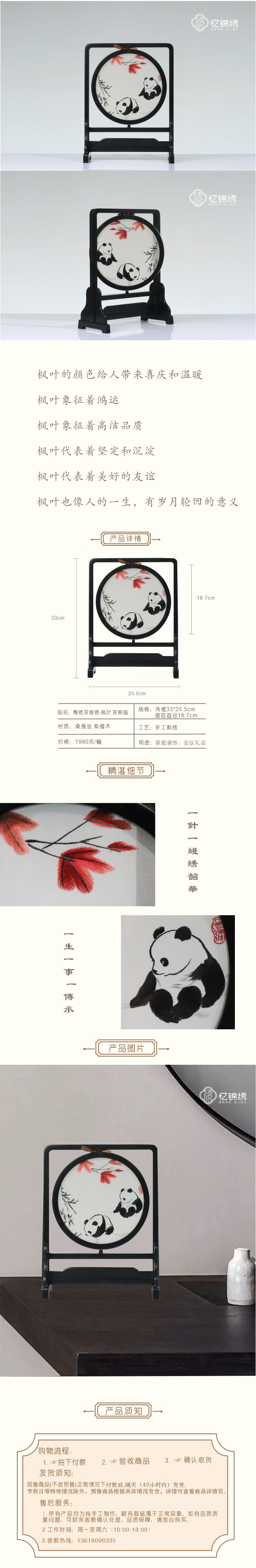 蜀绣双面绣-枫叶双熊猫