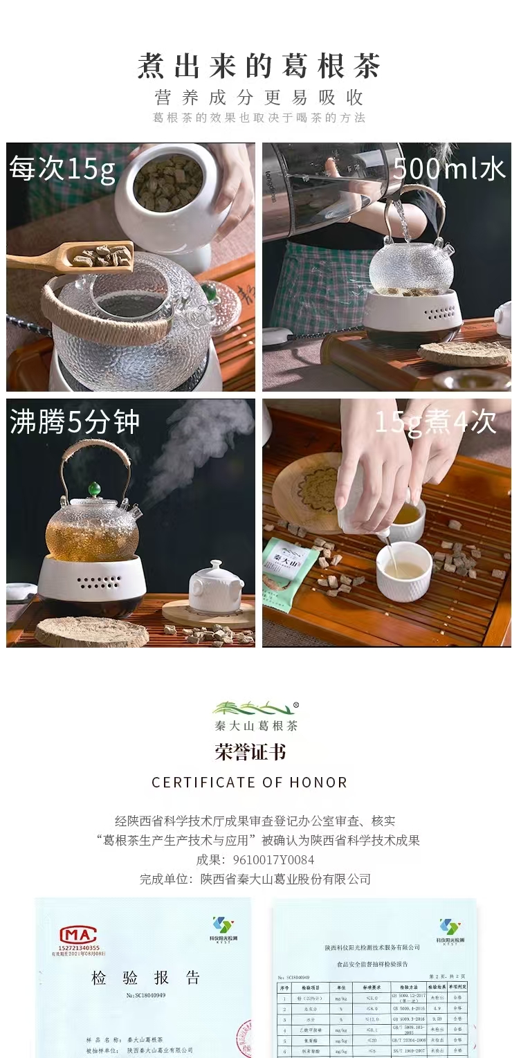 秦大山葛根茶礼盒装(50年葛根) 180g(买一送一,送葛康来野生葛根茶150g)