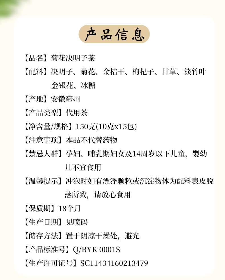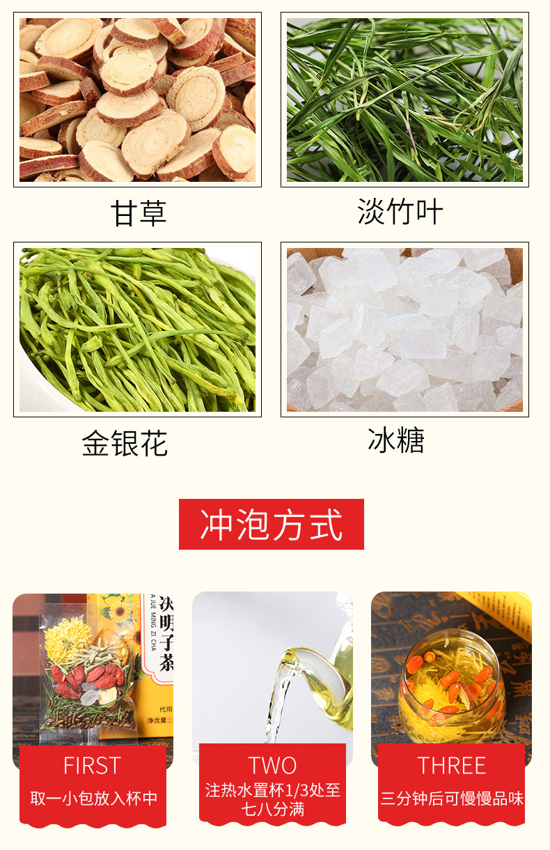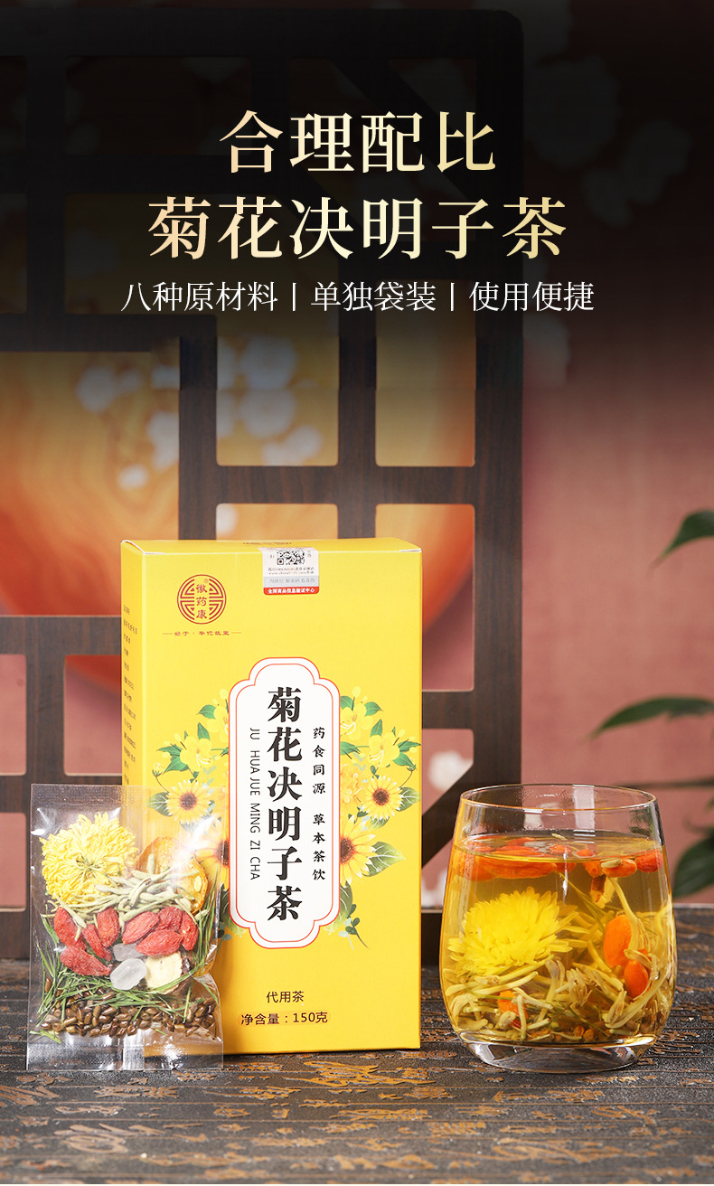 ②菊花决明子茶能够有效降低血压降血脂,改善扩冠状动脉、微循环,老少皆宜,既可作为调理身体的良方,也可作为消暑饮品冲泡给老人、小孩饮用