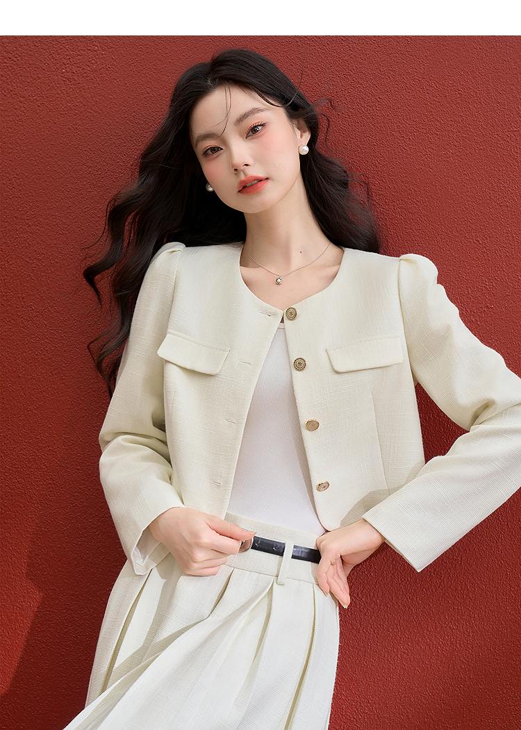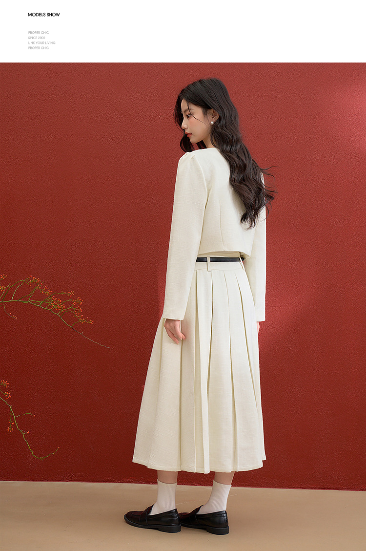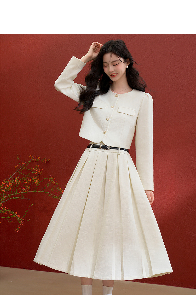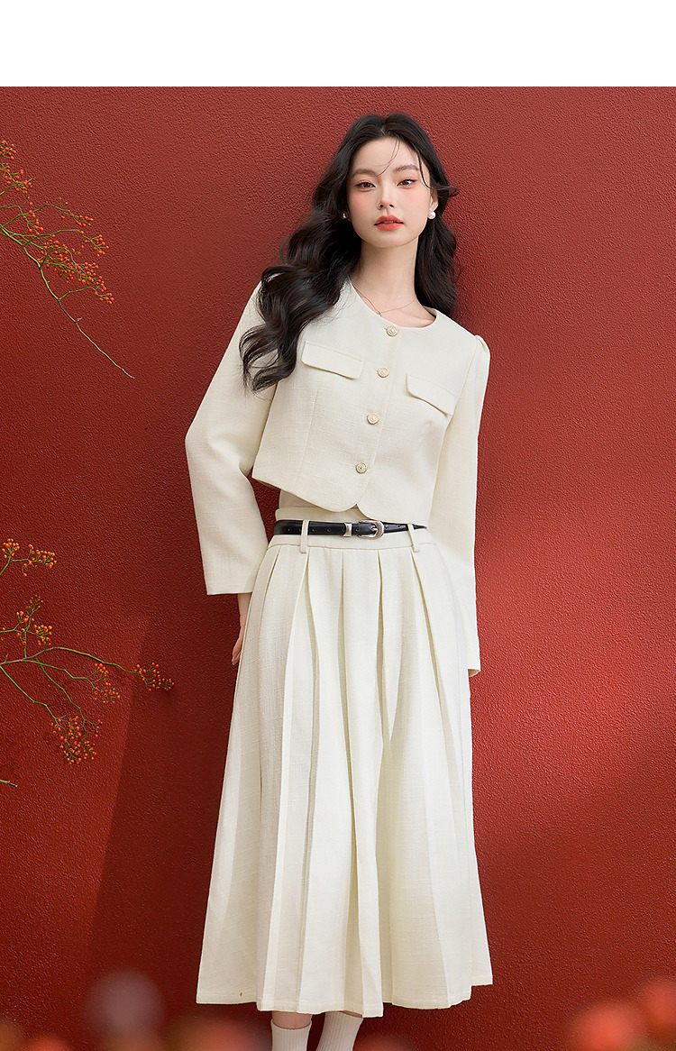 西遇千金小香风套装女冬季新款单排扣短外套高腰百褶裙两件套V3755286