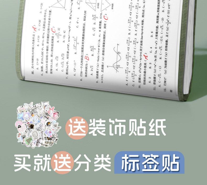 【800张试卷轻松收纳📚】学生&职场必备!牛油果绿风琴包,颜值在线还能随手涂鸦🎨,学习办公从此更高效✨学生大容量收纳袋 办公用品多层资料袋