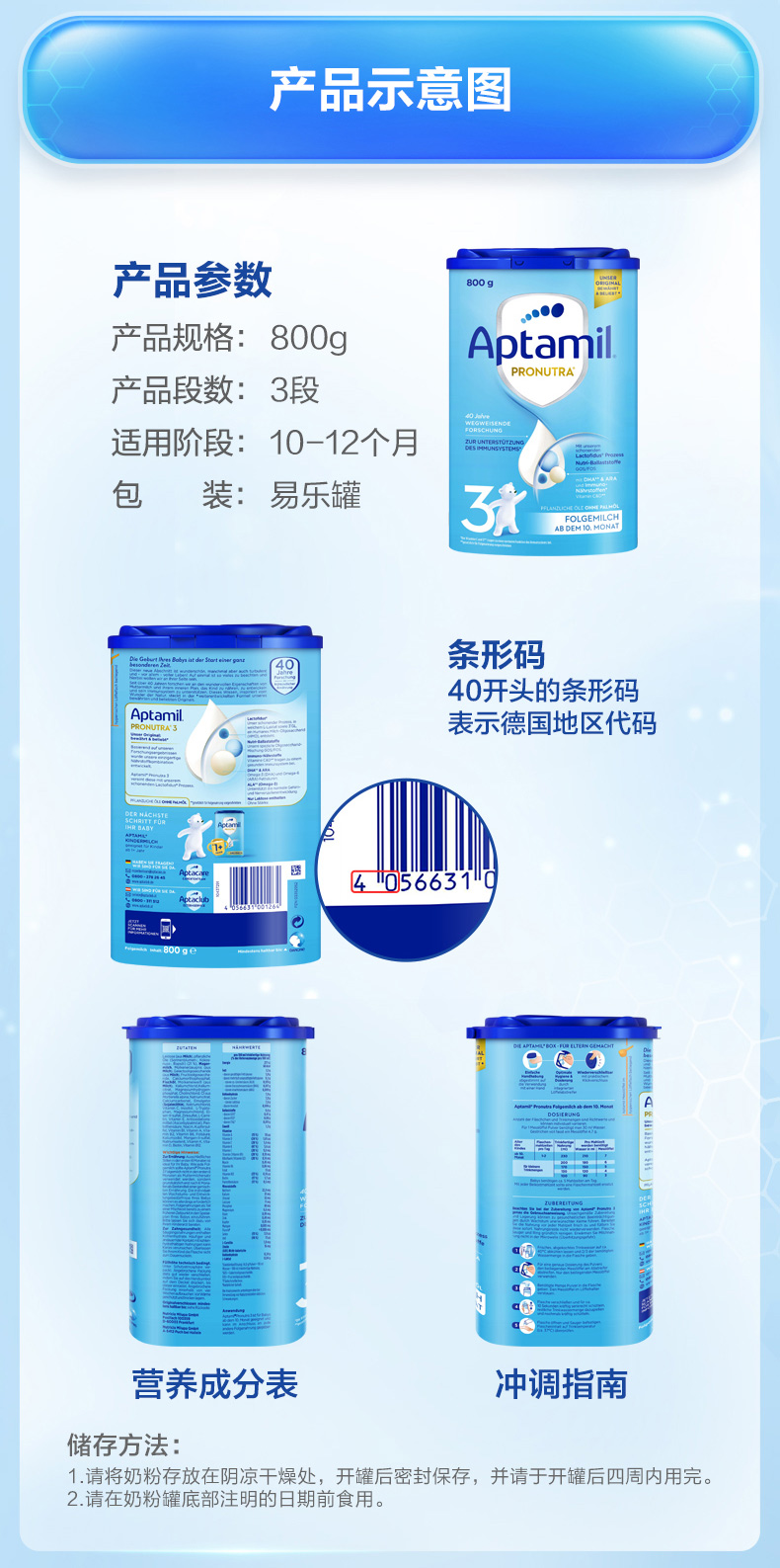 德国爱他美Aptamil3段德国进奶粉800g10-12个月 新老版本随机发货