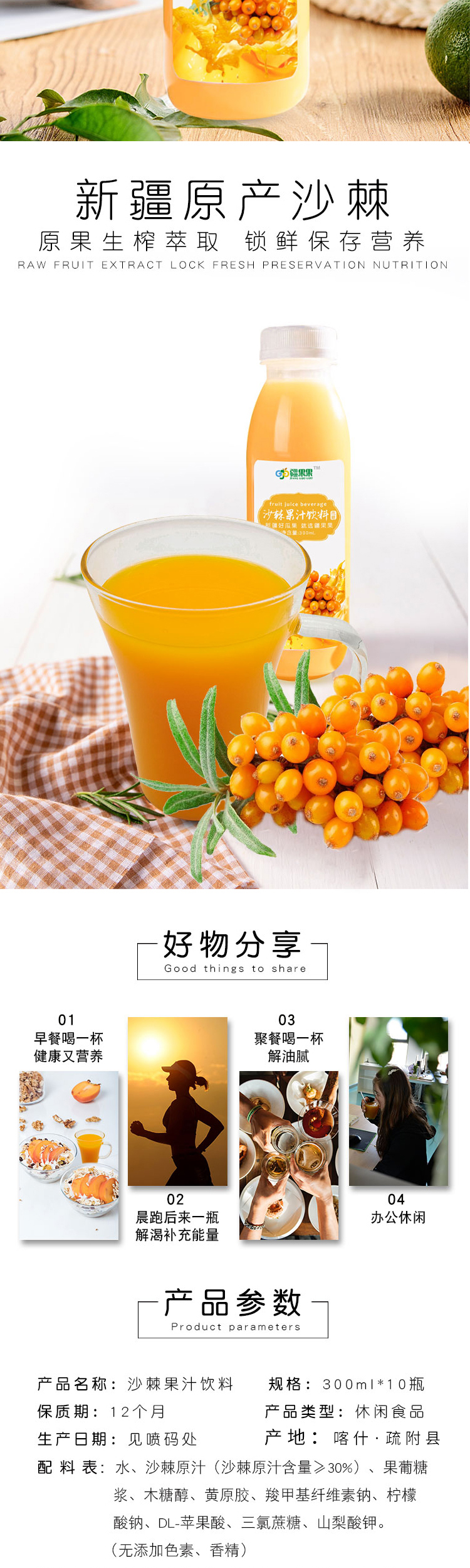 【喀什扶贫】沙棘果汁 300ml*10