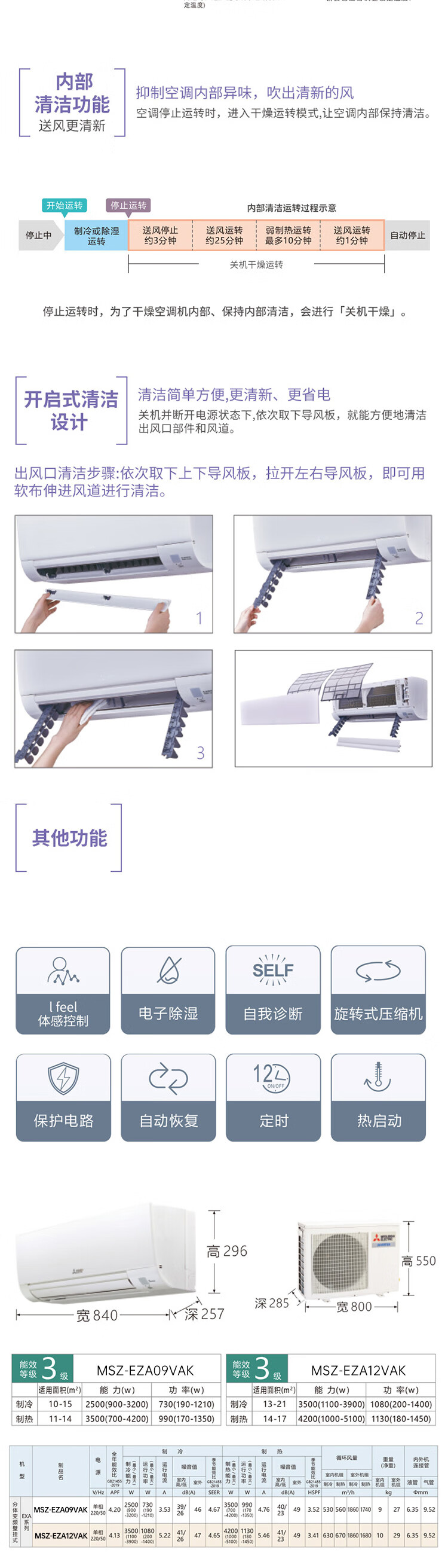 【门店同款】三菱电机变频冷暖空调 易拆洗挂机 壁挂式1.5匹/1匹家用空调 新能效 1匹 三级能效 MSZ-EZA09VAK/EZA12VAK