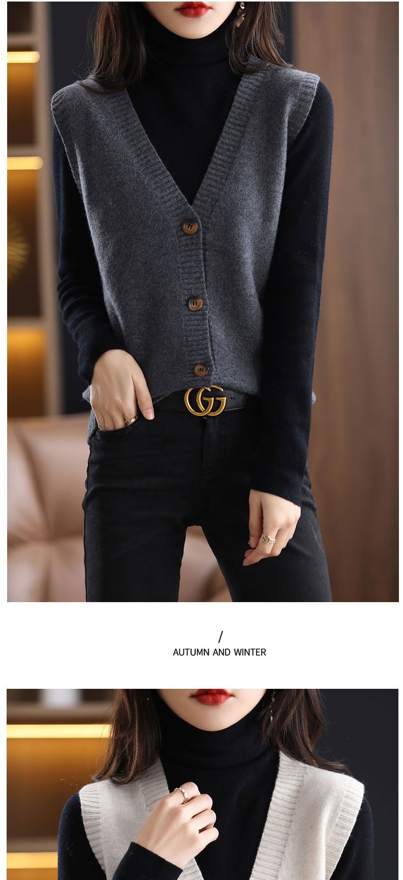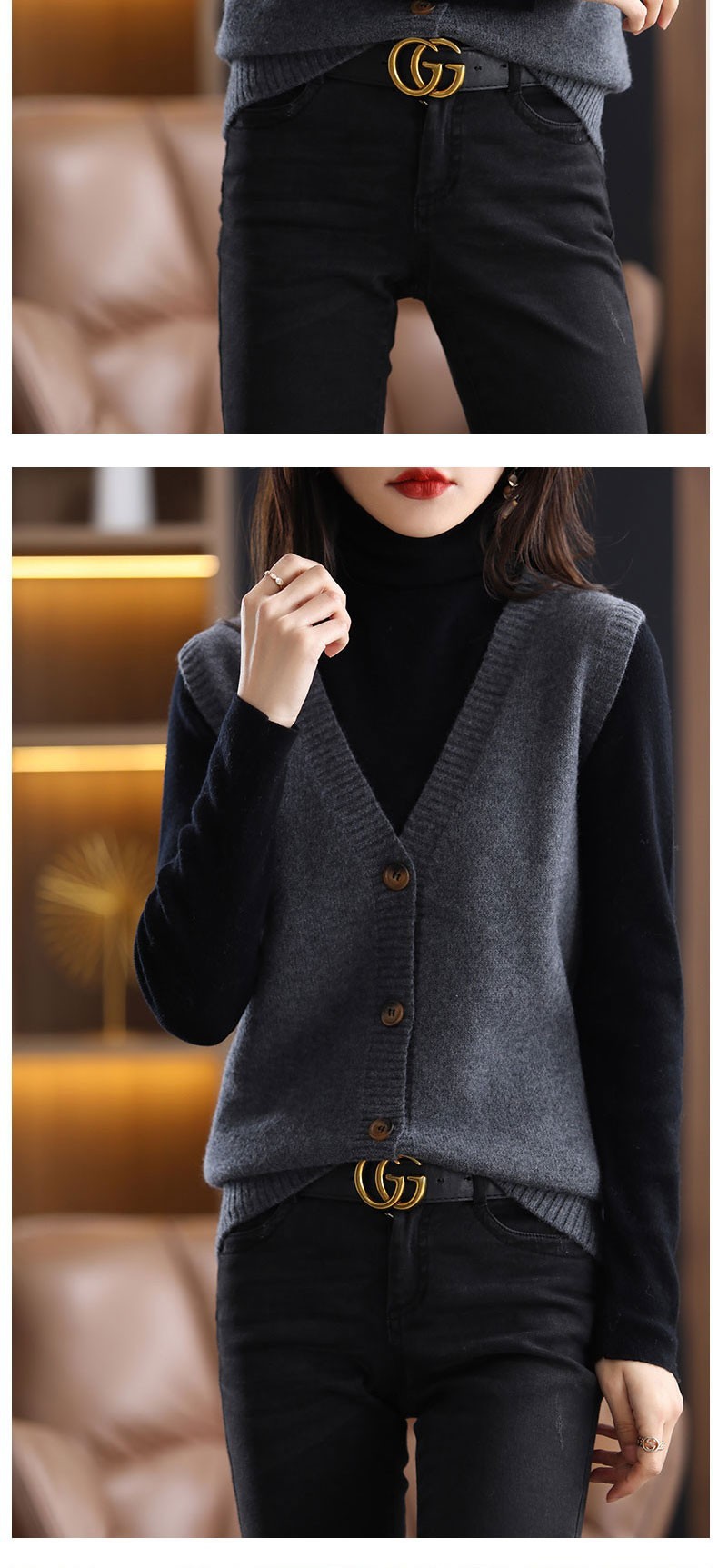 叠穿毛衣马甲女针织开衫无袖外搭春秋季2024年新爆款女装坎肩上衣
