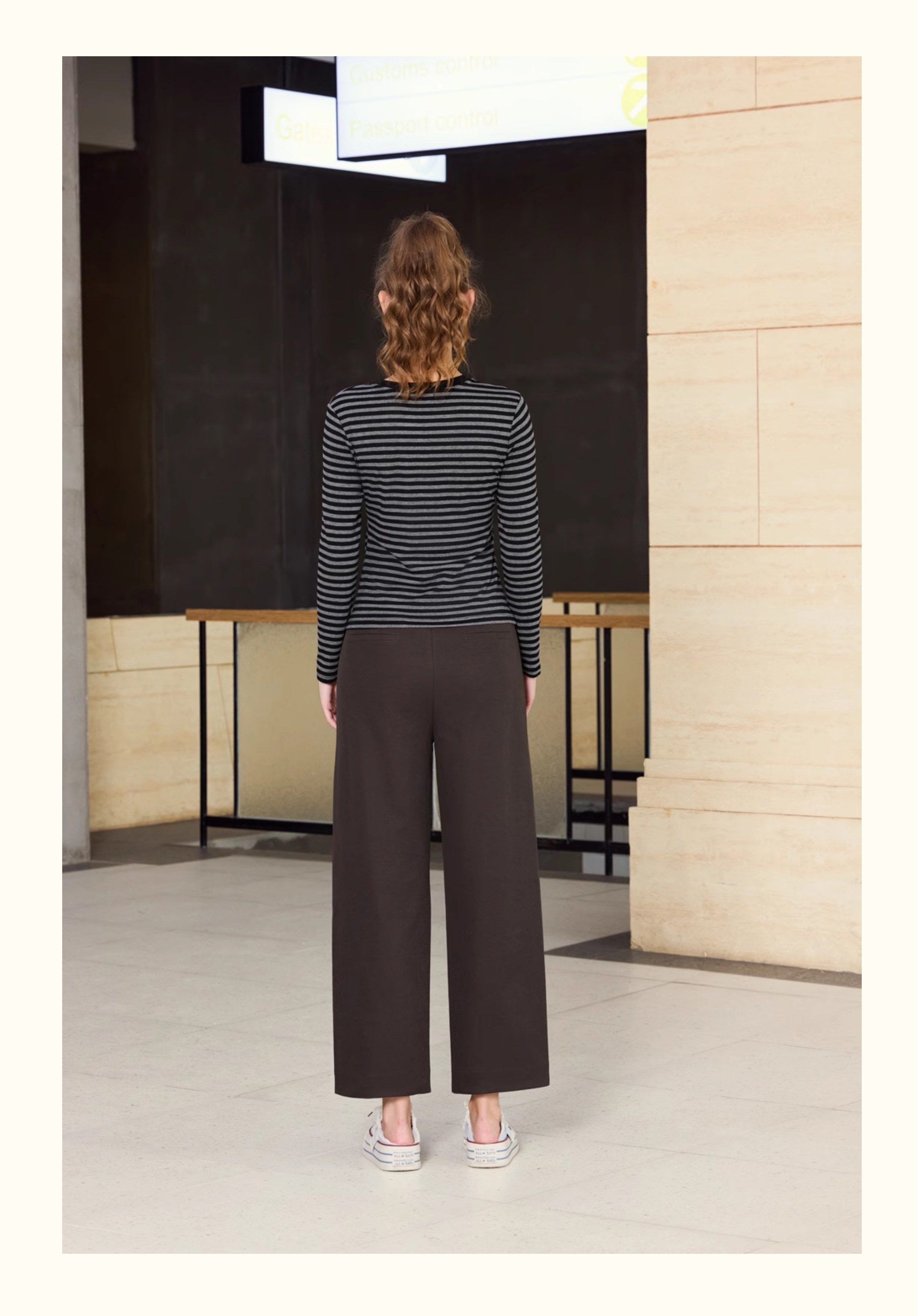半身缘女裤 春季撞色抽绳显高宽松中直筒休闲裤261102U10320223